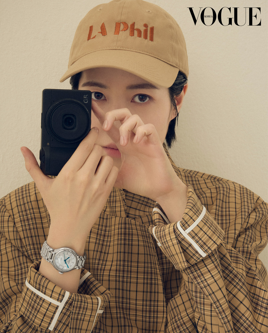 Catch the Moment 심은경이 포착한 오늘의 순간. ‘프리마루나’ 시계의 다이아몬드 인덱스가 아름답게 빛난다. 체크무늬 코트는 잉크(Eenk).
