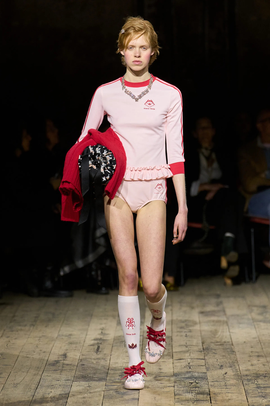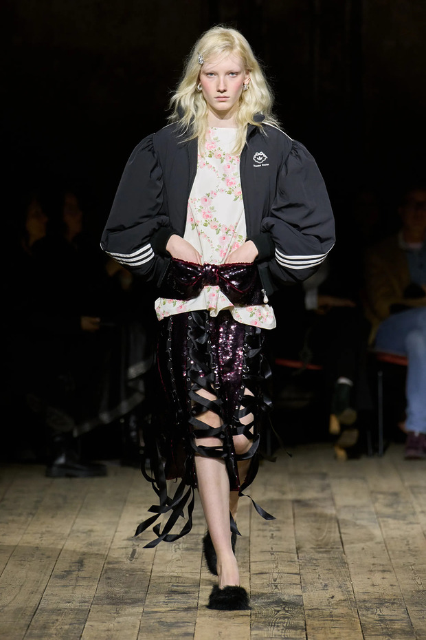 스타일 역시 흥미로웠습니다. 튀튀 스커트와 트랙 재킷 조합처럼 극단적으로 페미닌한 아이템과 데일리 룩으로 더 적합한 스포츠웨어를 뒤섞었죠. 그 위에 시어링 재킷을 걸치거나 ‘제정신이 아닌’ 스커트나 드레스를 활용한 룩은 일상에서도 충분히 참고할 만했습니다. 상반되는 분위기를 내뿜는 아이템을 섞는 스타일링이 때마침 유행 중이니까요!