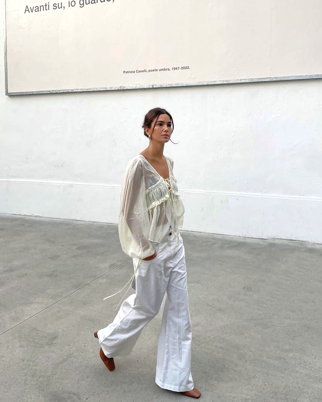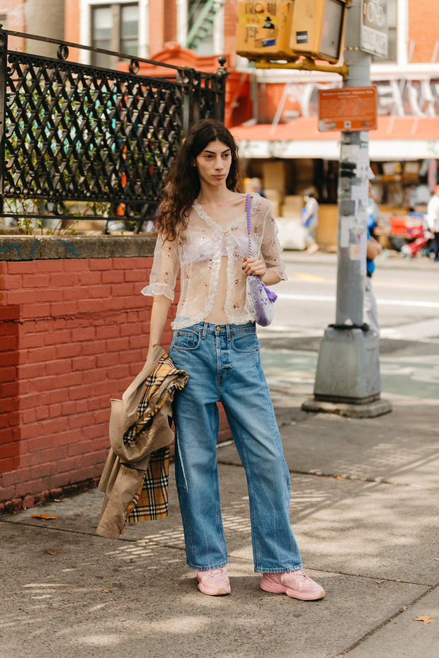 찬 바람 쌩쌩 부는 날씨에는 엄두를 못 냈던 시스루 블라우스부터 시도해보세요. 선택지가 다양하니 체형에 어울리는 걸로 고르면 됩니다. 상의가 가볍고 비칠수록 하의는 묵직하게 잡아주는 게 좋습니다. 1990년대 나오미 캠벨도, 2026년 거리 위의 멋쟁이도 청바지를 조합한 이유가 여기에 있죠. 무심하게 툭 입어주면 노출이 아니라 텍스처가 강조됩니다. 시크한 분위기를 내고 싶다면 블랙, 사랑스러운 분위기를 내고 싶다면 화이트로 시작해보세요.