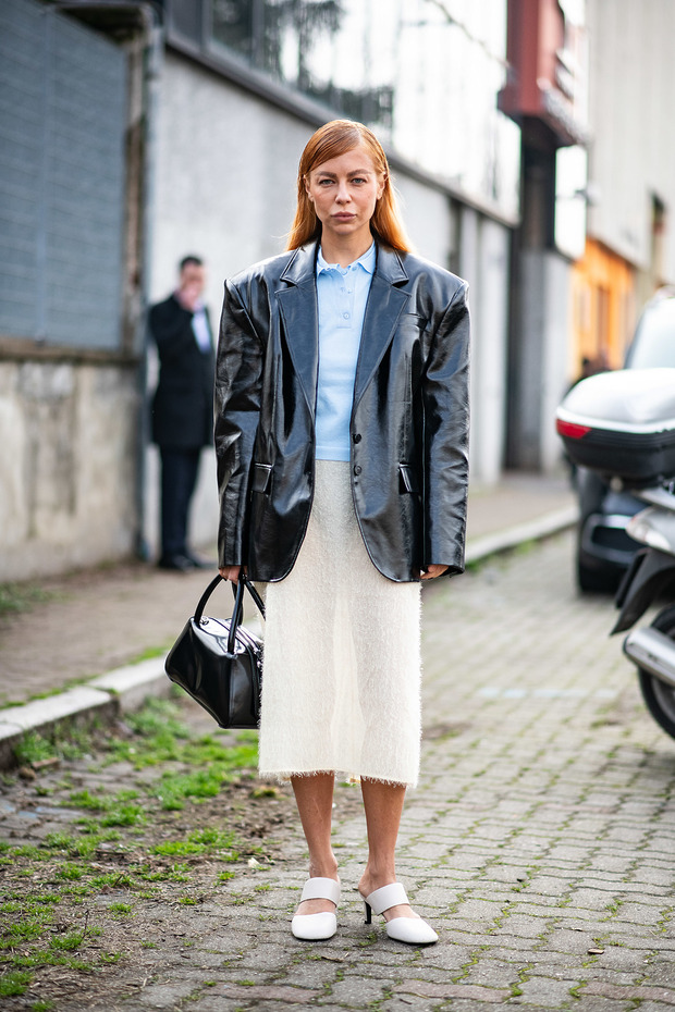 폴로 셔츠는 포멀과 캐주얼 모두 가능한 상의죠. 올해는 포멀한 룩에 가벼운 포인트를 줄 때 입어보세요. 1990년대 캘빈 클라인 런웨이에 오른 스타일처럼 미디스커트와 조합하는 겁니다. 부드러운 소재 덕분에 빳빳한 셔츠를 매치했을 때보다 훨씬 활동적으로 보일 거예요. 퇴근 후 저녁 약속까지 이어지는 날에 활용해보세요.
