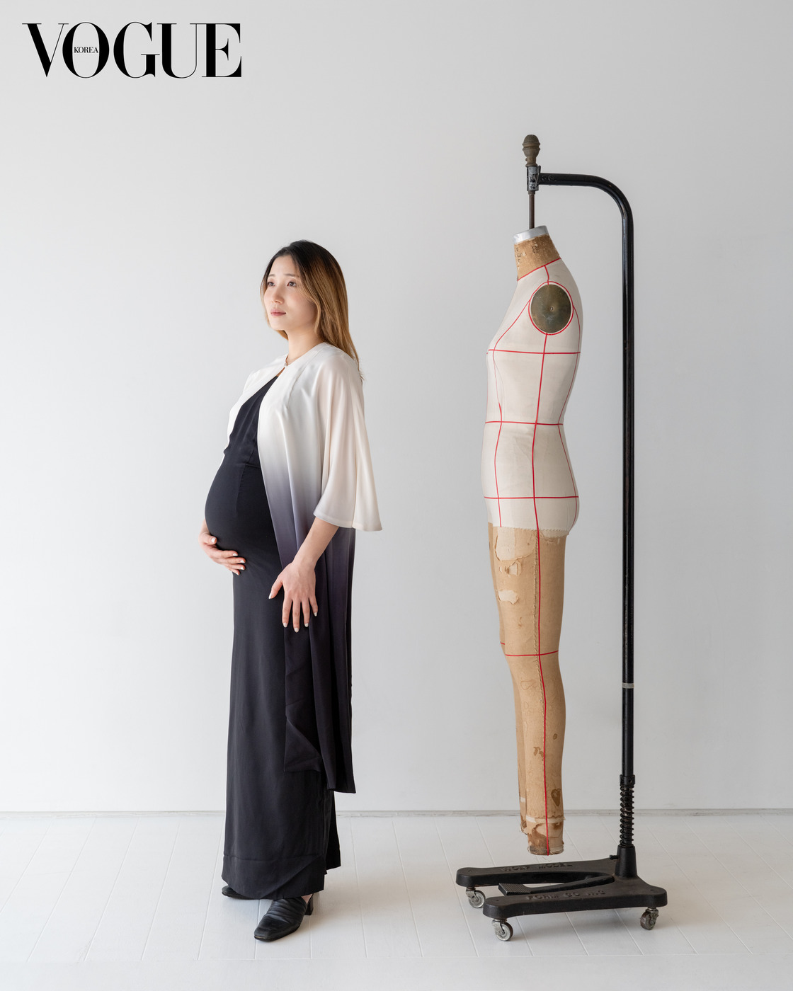 대기업에서 근무한 우리 엄마와 시어머니도 출산과 동시에 퇴사를 선언해야 했던 사회적 흐름을 고려할 때, 그보다 몇 세대 위인 노라노와 진태옥이 꿈을 좇기 위해 얼마나 많은 설움을 홀로 삼켰을지 짐작조차 되지 않았다. 그들까지 거슬러 올라갈 것 없이 60대의 나이에도 여전히 <보그>와 함께 한국적인 동시에 현대적인 감각이 돋보이는 화보를 기획하고 선보이는 서영희의 존재 역시 내게 대단하게 느껴지기는 마찬가지다. 디자이너와 스타일리스트로 시작한 서영희는 전시 기획으로 커리어가 확장되고 깊어지며 노라노와 진태옥의 존재를 점점 더 경외하게 된다고 고백한다. “옷의 기본과 탄생에 대하여, 그리고 그렇게 만든 옷이 어떻게 조화롭게 보일 수 있는지 끊임없이 고민하다 보니 어느 순간 옷이 말을 걸어왔는데 그런 옷 중 가장 시적인 작품이 진태옥 선생님의 옷이었어요. 여전히 볼 때마다 전율을 느끼죠(2015년 서영희는 진태옥 데뷔 50주년 기념전 <앤솔로지>의 전시 총감독으로도 활약했다).” 노라노의 존재에 대해 알게 된 것은 2016년 <보그 코리아> 창간 20주년 기념 기획전을 통해서다. “당시 선생님께서 너무 잘 협조해주셔서 감사했지만 역사적으로 유의미한 아카이브라는 생각 외에는 사실 큰 감흥이 없었어요. 그러다 올해 3월 21일부터 7월 16일까지 경운박물관에서 열리는 노라노 선생님의 전시를 위해 몇 달에 걸쳐 오랜 고객들의 소장품을 받아 보는데 그 시대의 미감과 디자인이 이제야 눈에 들어오고, 애정이 생기기 시작하더군요. 한복 옷감을 활용한 방식과 프린트를 연결하는 재단법, 실크 드레이프 등 모든 디테일이 귀하게 느껴졌죠.”