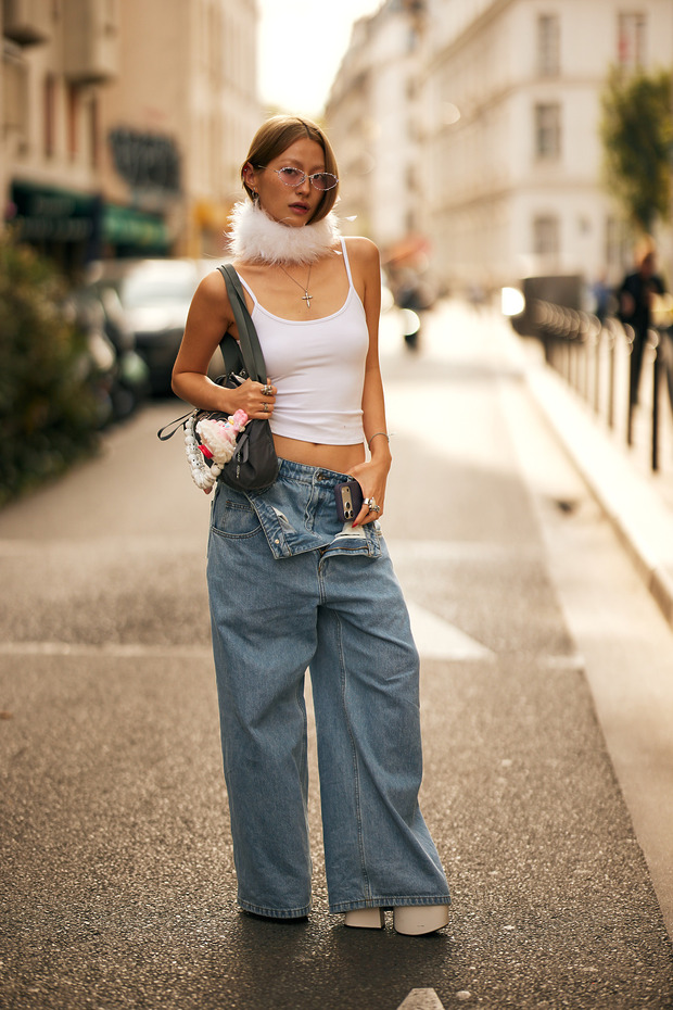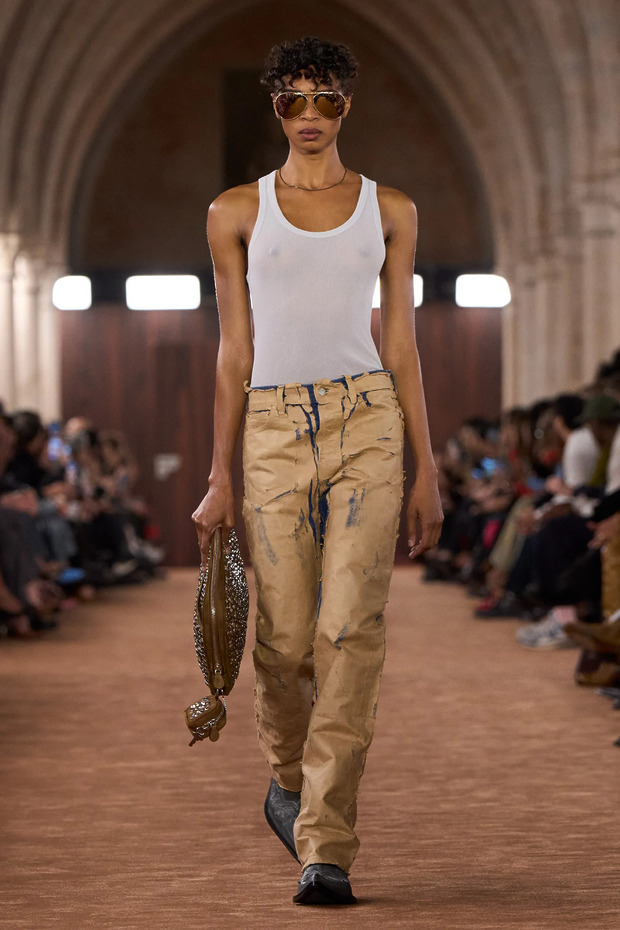 탱크 톱과 청바지 조합은 흰 티셔츠와 청바지 조합과 미묘하게 다릅니다. 전자가 어딘가 펑크적이고 자유분방한 분위기를 자아내는 반면, 후자는 미니멀리즘에 기반을 두고 있죠. 탱크 톱이 티셔츠를 넘어 청바지의 ‘베스트 프렌드’ 자리를 넘볼 수 있는 것도 같은 이유 때문입니다. 지금은 마냥 깔끔하고 단정한 것보다 개성을 드러내는 것이 유행 중이니까요. 목이 깊이 파여 있고, 양팔이 훤히 드러나는 탱크 톱은 티셔츠보다 훨씬 독창적인 스타일링이 가능한 아이템입니다. 블레이저를 걸치면 믹스 매치가 완성되고, 단독으로 입으면 그런지한 무드를 낼 수 있죠. 클럽 문화에서 영감받은 디자인을 선보이는 루더(Lueder)의 2026 가을/겨울 컬렉션 룩이 좋은 예입니다.