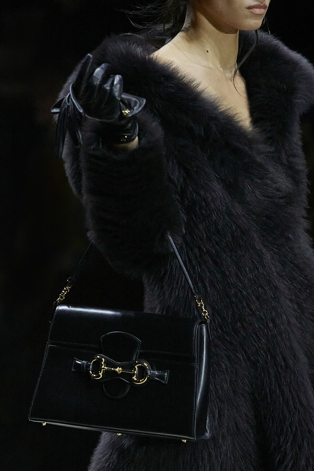그렇다고 아쉬울 것도 없는 것이 뎀나는 다양한 체형과 키, 나이대를 두루 아우르겠다는 포부도 실천했습니다. 칼리 클로스가 런웨이를 걷고, 케이트 모스가 과거처럼 섹슈얼한 모습으로 피날레를 장식해서만은 아닙니다. 컬렉션은 총 다섯 챕터로 나뉘었으며, 레깅스나 트랙 수트와 함께 선보인 테일러드 수트는 보는 이들의 마음을 사로잡기에 충분했죠. 브이넥 레더 재킷이나 흐르는 듯한 실루엣의 블레이저와 길게 뻗은 트라우저, 슬릿이 들어간 미니스커트와 길거나 짧은 코트가 구찌의 시크함을 드러냈습니다. 거의 모든 모델은 구찌 가방과 함께였는데, 특히 구겨지는 가죽으로 만든 재키 백이 쿨했죠. 보티첼리의 ‘프리마베라’에서 영감을 받은 플리츠 플로럴 드레스 라인이나 인조 모피를 활용한 코트와 청바지 조합은 로맨틱하면서도 일상적이었습니다.