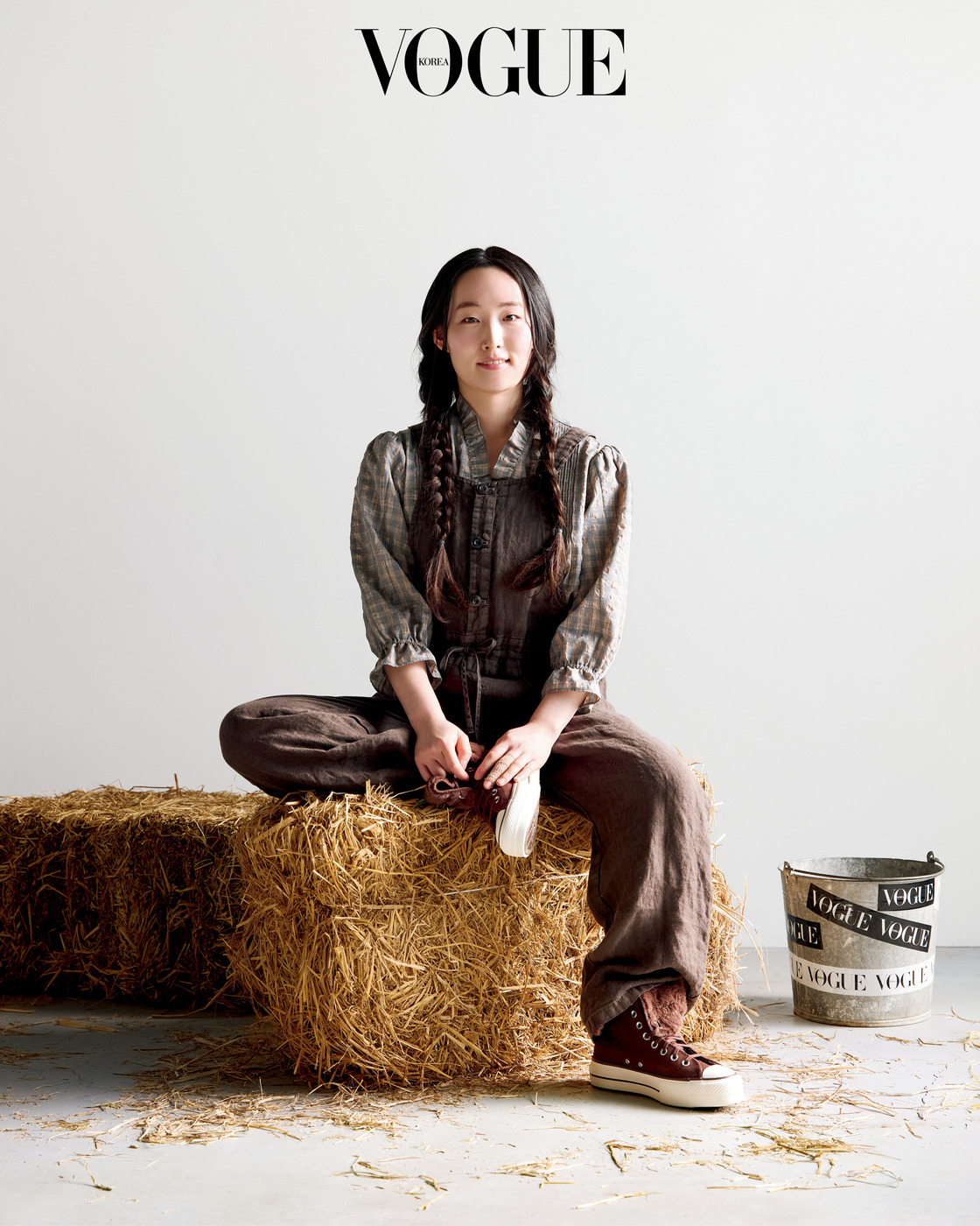 “안녕하세요. 천연 수세미를 주재료로 작업하는 공예가 김예지입니다. 자연의 질감과 손의 감각을 바탕으로 수세미의 쓰임과 조형의 경계를 탐구하고 있죠. 최근에는 배렴가옥 레지던시에 입주해 작업실 생활에 적응하는 중이에요. 외부에서도 자유롭게 드나드는 공간이다 보니 정말 많은 사람을 마주하거든요. 하지만 그런 새로운 환경에서 오히려 작업에 대한 집중력이 길러지는 것 같다는 기분도 듭니다. 이런 환경이 어떤 작업으로 이어질지 기대되기도 하고요. 작업에 더 몰입하기로 결심한 시점에 스스로에게 또 다른 긍정적인 자극을 주고자 보그 포토 스튜디오의 문을 두드립니다. 쉽게 포기하지 않으며 조용하지만 단단한 성향이 사진에 담겼으면 좋겠어요. 여러 도전을 감행하고 있는 저에게 ‘지금도 충분히 잘하고 있다’고 말해주고 싶습니다.”
