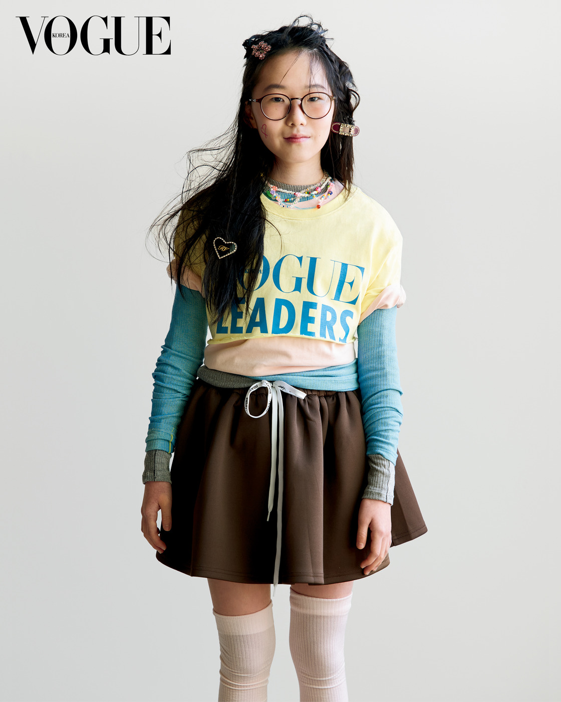 “언스쿨링(아이 스스로 관심과 흥미를 추구하며 자유롭게 배우는 교육 방식)을 하고 있는 2012년생 김별입니다. 저는 또래 친구들과 달리 학교에 가지 않고, 집에서 제가 원하는 공부를 하고 있어요. 태권도, 피아노, 게임, 영상 편집… 하루를 제가 좋아하는 것으로만 채우죠. (엄마 아빠에게 고맙습니다!) 사랑하는 가족과 친구들이 있고, 제가 좋아하는 일을 하며 하루하루 살아가기 때문에 불안감은 없어요. 하고 싶은 게 너무 많아 고민이랄까요. 저를 한 단어로 표현한다면 ‘자유로운 탐험가’입니다. 궁금한 건 못 참고, 일단 해보거든요. 극‘I’형이라 보그 포토 스튜디오 촬영을 앞두고 정말 떨렸지만, 호기심을 참지 못하고 결국 카메라 앞에 섰습니다. 생애 가장 큰 용기가 필요했어요. 아직 완벽하게 잘하는 건 없지만 <보그> 촬영처럼 뭐든 행복하게 도전하고 싶어요. 천천히, 하나씩요!”