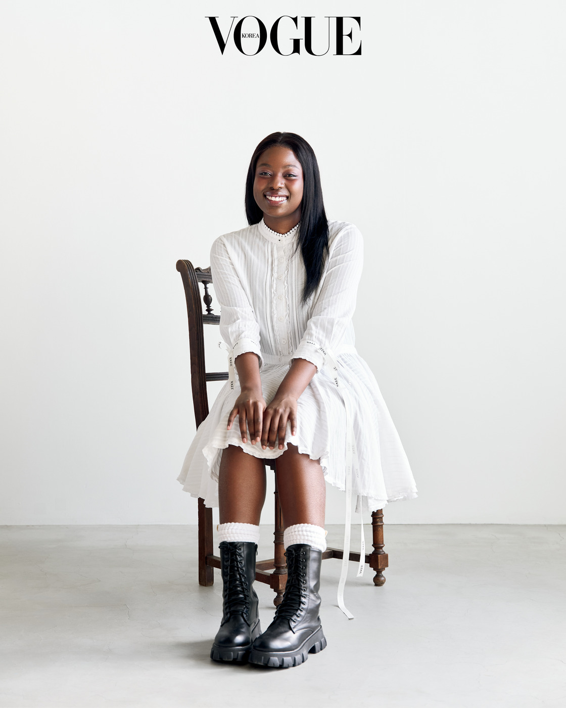 “세네갈에서 온 가예 디아리아투(Gaye Diariatou)입니다. 스물네 살이에요. 6개월 전 석사과정을 마치고 지금은 수출입 회사에서 인턴으로 일하고 있습니다. 풀타임 직장 생활은 처음이라 정신없는 하루하루를 보내고 있어요. 그 전에는 한국 초·중학교에서 다문화 수업을 했죠. 아는 분들이 있을지 모르겠지만, 저는 ‘슈의 미용실’이라는 게임을 통해 처음 한국에 관심을 갖게 됐어요. 게임 속에 등장하는 한국어가 궁금했고, 이후 자연스럽게 한국 문화에 대한 관심이 커졌죠. 그러다 스물한 살에 홀로 한국에 왔습니다. 저에게 한국은 도전이자 성장을 의미해요. 이곳에서 지내는 동안 저에 대해 더 깊이 알게 되었고, 더 성숙해졌다고 느낍니다. 취업 걱정에 불안한 마음도 들지만, 과거에 비해 더 현실적이고 단단한 지금의 제 모습이 마음에 들어요. 취업 전 저에게 다문화 수업을 듣던 한 초등학생이 보여준 노트에 ‘나중에 세네갈에 가보고 싶어요. 더 알고 싶어요’라고 쓰여 있었어요. 그걸 보면서 멈춰 있다고 느끼는 순간도 아무것도 아닌 시간은 아님을 깨달았죠. 늘 경쟁할 필요는 없다고, 앞으로도 꿈을 잃지 말자고 스스로를 응원하며 보그 포토 스튜디오에 편지를 보냅니다.”