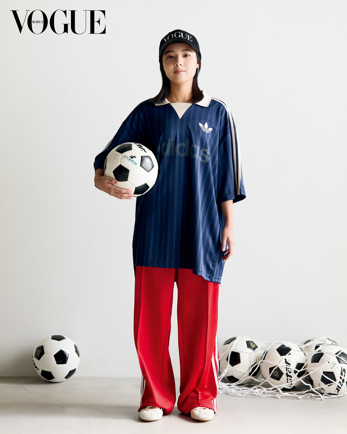 “백운중학교 3학년 카플레 사라(Kafle Sarah)입니다. 목사이자 자상한 성격의 네팔인 아버지와 현명한 한국인 어머니 사이에서 태어났어요. 조용하지만 따뜻한 오빠도 한 명 있죠. 가족 소개가 상세하다고요? 그만큼 가족을 정말 사랑하거든요! 이번 보그 포토 스튜디오 촬영에서는 축구 유니폼을 입었어요. 하루 중 대부분은 공부를 하며 시간을 보내지만 운동을 정말 좋아하거든요. 뛰고, 땀 흘리고, 공을 따라 움직이다 보면 더 단단한 사람이 되는 것 같아요. 야구를 보거나 친구들과 축구 하는 시간이 저에겐 가장 큰 힐링이랍니다. 아직은 어떤 공부를 하고, 어떤 직업을 가져야 할지 잘 모르지만, 아름다운 시선으로 세상을 바라보는 사람이 되고 싶어요. 한국에서 살아가는 수많은 여자들 중 한 명으로, <보그>에 제 얼굴과 이야기가 담긴다는 게 너무 행복합니다.”