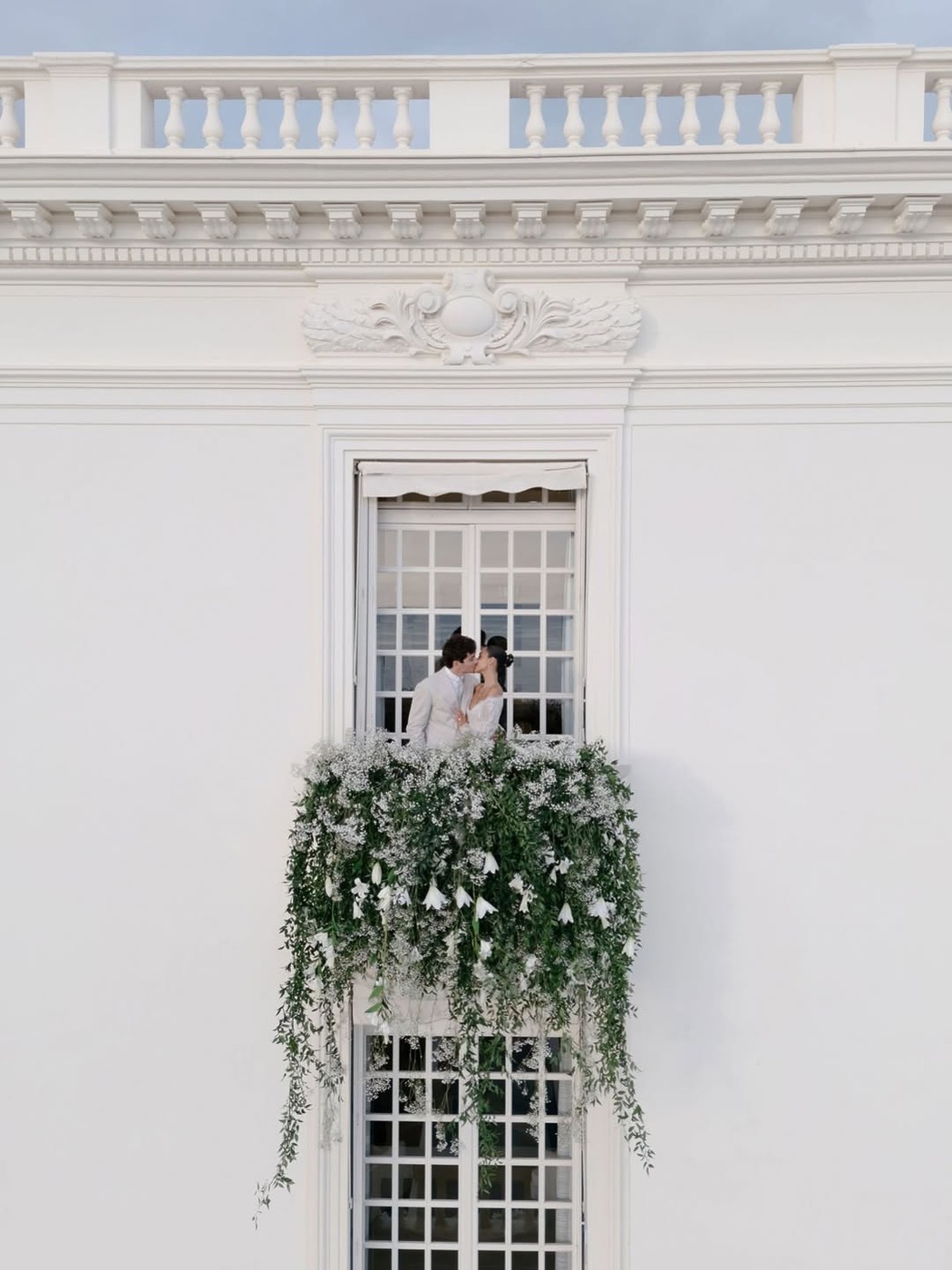 결혼식의 주인공인 생 믈루는 파올로 세바스티안의 반짝이는 레이스 오프숄더 머메이드 드레스와 그라프 주얼리로 웨딩 룩을 완성했습니다. 드레스에는 두 사람의 이니셜과 결혼 날짜가 새겨져 있었죠. 르클레르는 평소에도 즐겨 입는 브루넬로 쿠치넬리의 크림색 수트를 선택했습니다. 반려견 레오도 맞춤형 턱시도(!)를 입고 참석해 눈길을 끌었습니다.