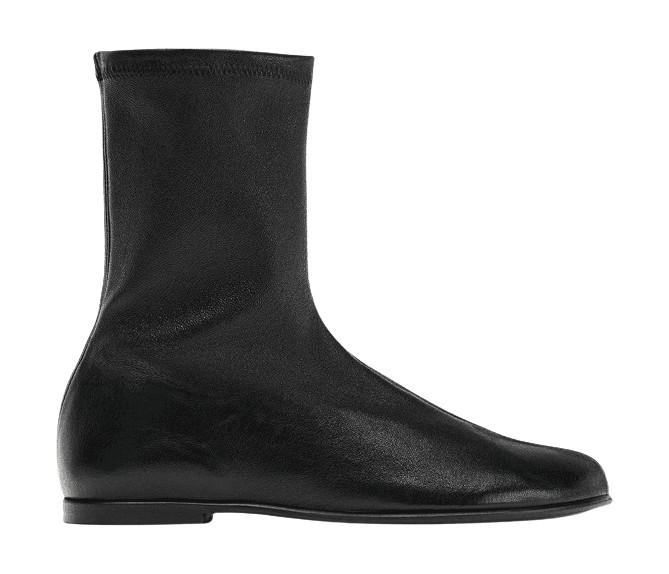 아우터에 따라 캐주얼의 농도가 달라지는 룩입니다. 앞서 소개한 시가렛 진보다는 폭이 낙낙한 일자 청바지에 느슨하게 떨어지는 화이트 셔츠, 요즘 유행하는 더 로우 스타일의 소프트 레더 앵클 부츠를 매치하면 회사에 입고 갈 법한 정갈하면서도 캐주얼한 청바지 룩이 됩니다. 여기에 가죽 재킷을 걸쳤다면 스마트가 아니었겠죠? 사진처럼 소재가 좋아 보이는 블랙 코트나 토템의 미니멀하면서도 실키한 아우터를 걸치면 좀 더 격식을 차린 점잖은 무드가 완성됩니다.