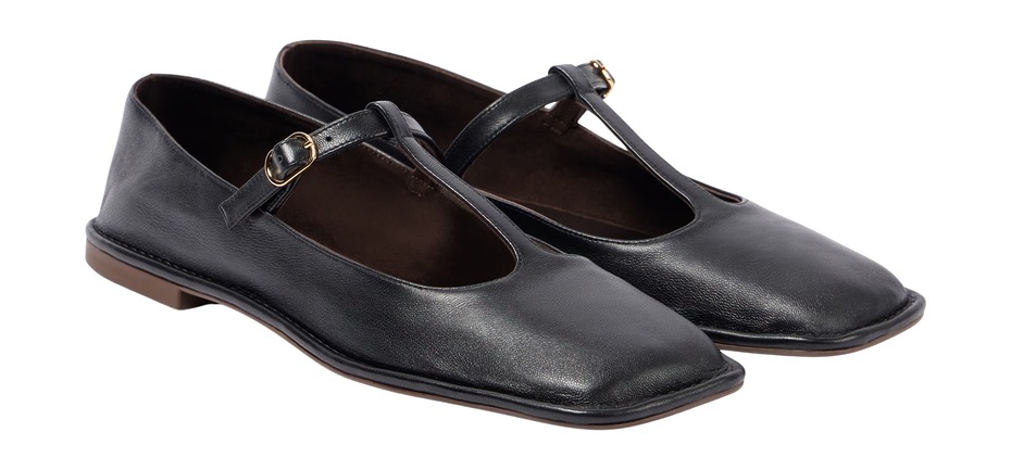 더 로우스퀘어 T 스트랩 레더 플랫 슈즈