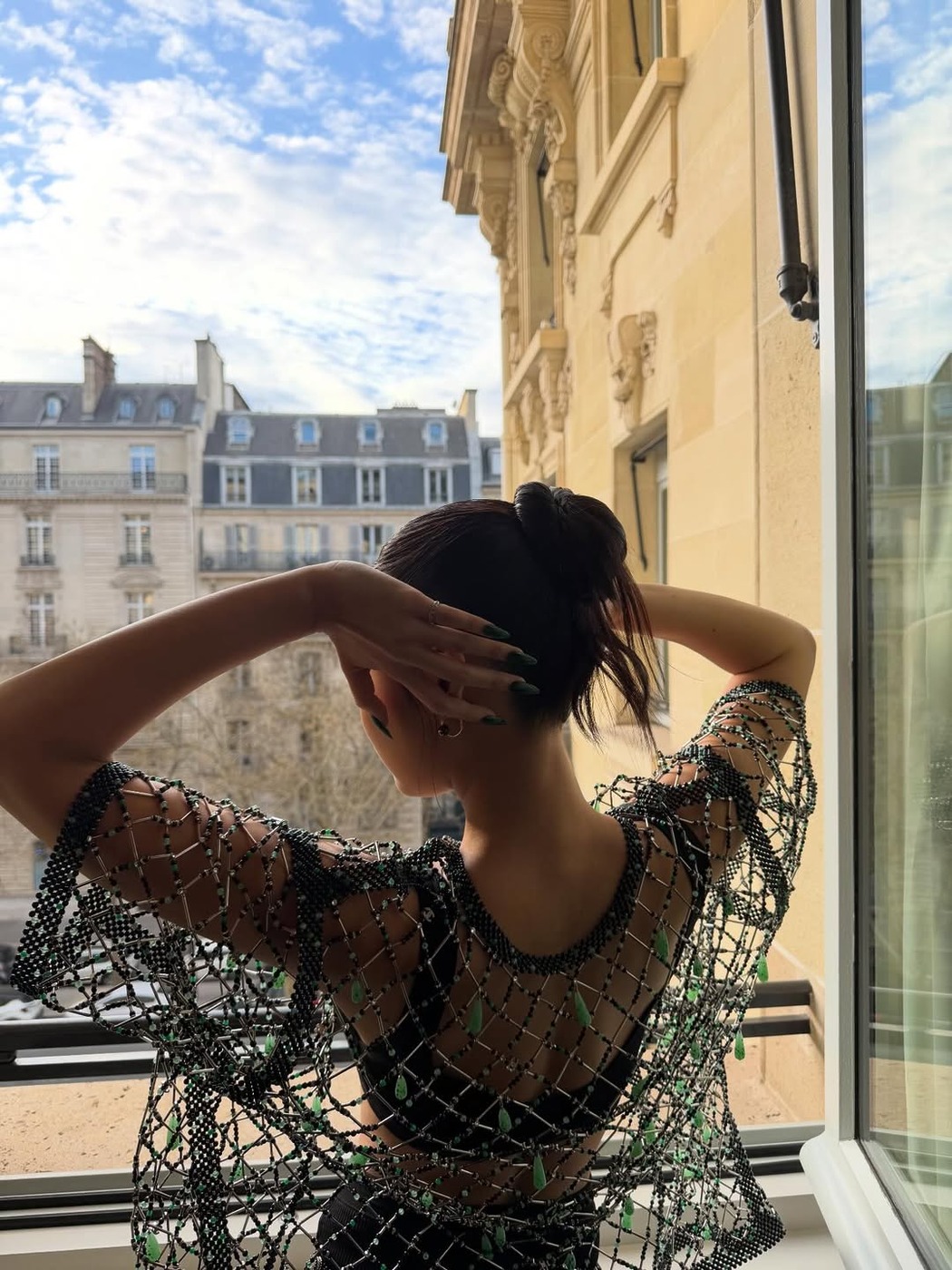 제니의 디테일은 여기서 끝나지 않습니다. 옷에 달린 물방울 모양 비즈와 최대한 어울리도록 손톱을 길게 아몬드 형태로 다듬었습니다. 만약 스퀘어 형태였다면 더 강한 인상을 줬을 거예요. 제니는 의상으로 이미 충분히 도발했으니, 나머지 요소는 최대한 고급스럽고 차분하게 마무리했습니다. 마침, 옥색이 그에 걸맞은 컬러고요. 이번 봄, 차분하게 시작하고 싶다면 제니의 ‘옥색’ 네일을 참고하세요!