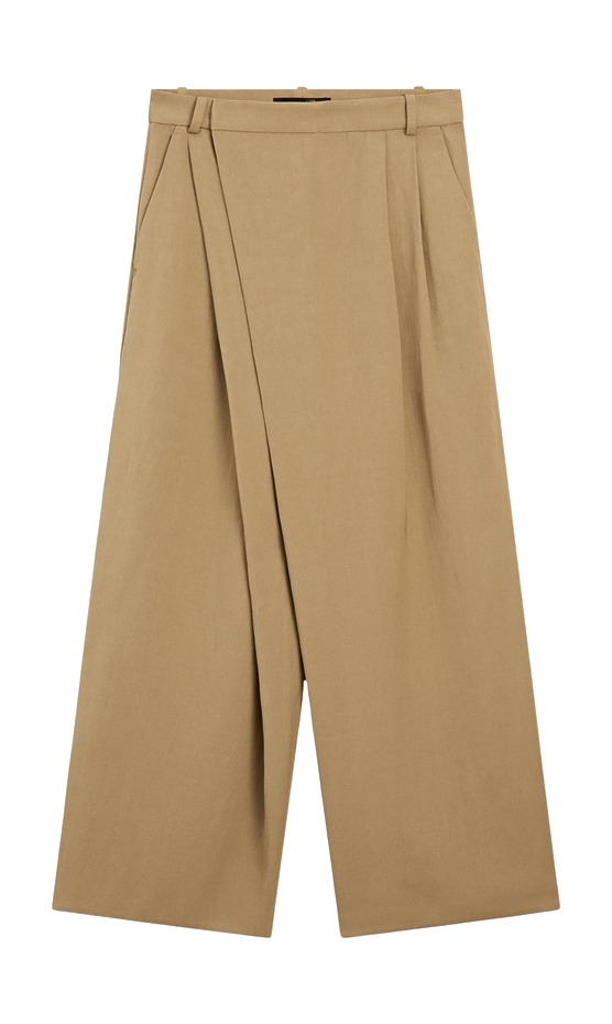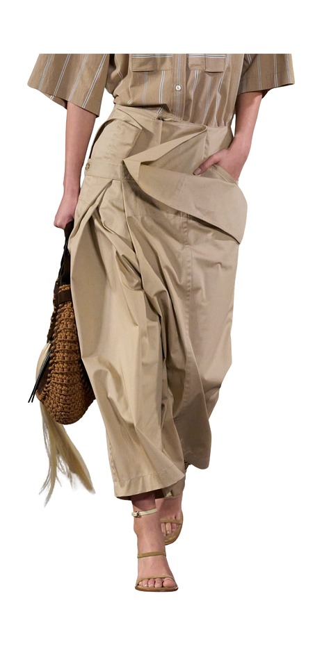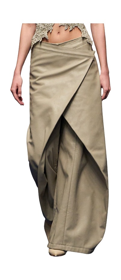 요즘 주요 브랜드들의 컬렉션에서 끊임없이 목격되는 이 디자인은, 지난해 하렘 팬츠가 일으킨 바이럴 열풍을 떠올리게 할 만큼 강렬한 존재감을 뽐내고 있습니다. 랩 팬츠의 가장 큰 특징은 한쪽 또는 양쪽으로 교차된 디자인입니다. 두 다리를 감싸며 스커트와 팬츠를 절충한 듯한 실루엣이죠.
