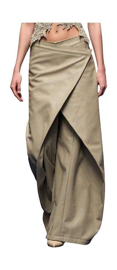 2025년에는 배럴 진이나 하렘 팬츠에 빠졌다면, 올봄에는 그 모든 것을 대체할 트렌드가 등장했습니다. 랩 팬츠와 사롱 팬츠입니다.
