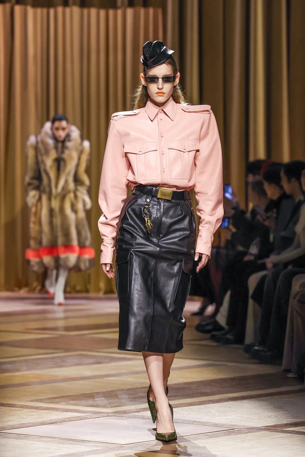 뮈글러의 미겔 카스트로 프레이타스 역시 거친 1980년대에서 영감을 길어 올렸습니다. 패치 포켓이 달린 레더 셔츠, 과장된 어깨 라인의 롱 레더 코트, BDSM 뉘앙스를 거침없이 드러낸 실루엣에는 벨트를 두른 펜슬 스커트를 매치했죠. 1980년대 스타일의 회귀는 여성의 힘, 나아가 여성 특유의 강인함을 어느 때보다 확고히 보여줍니다.