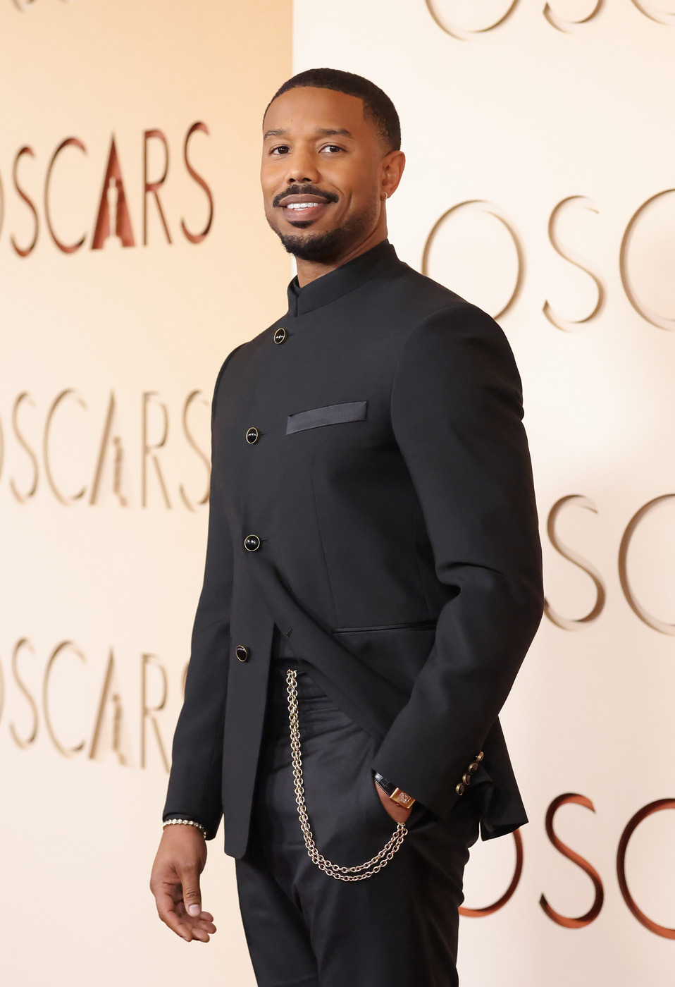<씨너스: 죄인들>로 남우주연상을 받은 마이클 B. 조던은 깔끔하게 다듬은 콧수염과 턱수염을 자랑했습니다. 블랙 턱시도와도 잘 어울리는 짙은 수염이었어요.