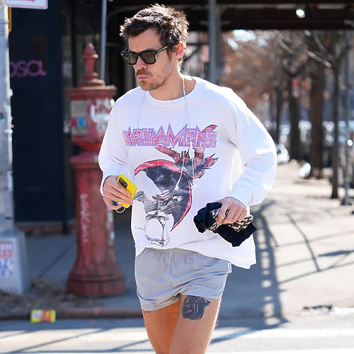 얼핏 평범한 듯 보였지만 해리 스타일스의 룩에도 ‘아는 사람만 아는’ 포인트가 잔뜩 숨어 있었습니다. 앨범 홍보로 한창 바쁜 시간을 보내는 그는 자그마한 로고가 새겨진 프라다 재킷에 물이 빠진 후디를 매치했습니다. 바지는 빈티지 리바이스, 스니커즈는 아디다스였고요. 하이패션과 빈티지를 섞는 ‘하이 앤 로우’ 스타일링의 정석이었습니다. 재킷 지퍼 부분을 확대해보면 또 다른 흥미로운 디테일을 발견할 수 있습니다. 종이 태그를 잘라낸 뒤 끈을 그대로 놔둔 거죠. 진중함은 덜어내고 빈티지 감성은 배가하기 위한 선택처럼 보입니다. 어떤 면에서는 해지고 얼룩진 옷이 등장한 프라다 2026 가을/겨울 남성복 컬렉션이 떠올랐고요.