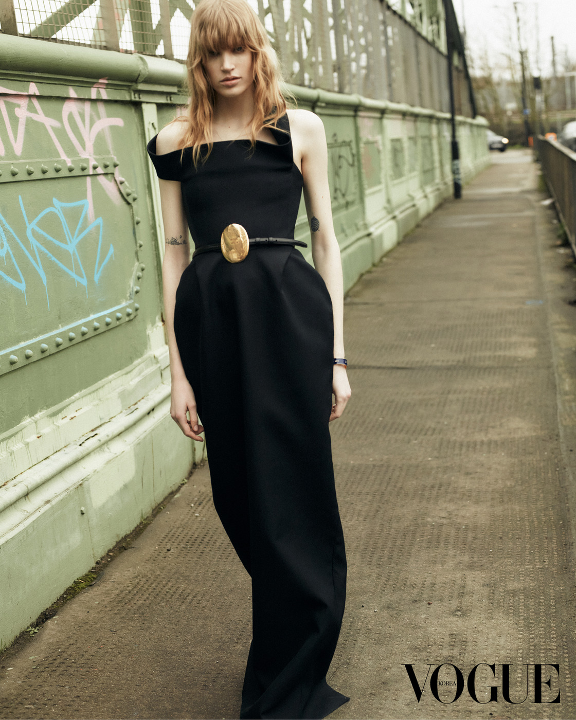 TAKE A WALK 비 내리는 런던, 모델 재키가 셀린느의 우아한 검정 드레스를 입고 다리를 건너고 있다. 2025년 런웨이 데뷔 시즌에만 10개가 넘는 빅 쇼에 선 그녀는 지금 패션계가 가장 사랑하는 차세대 톱 모델이다. 이제 막 끝난 2026 가을/겨울 패션 위크에서도 셀린느를 비롯해 샤넬, 루이 비통, 에르메스 등 총 21개 런웨이에 올랐다.
