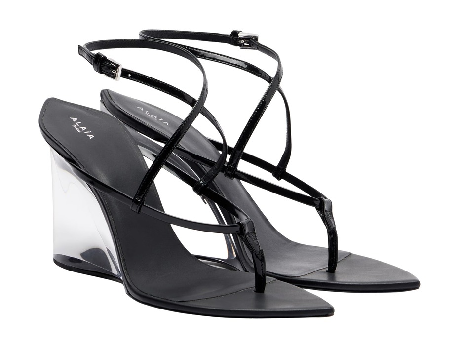 알라이아페이턴트 레더 웨지 샌들