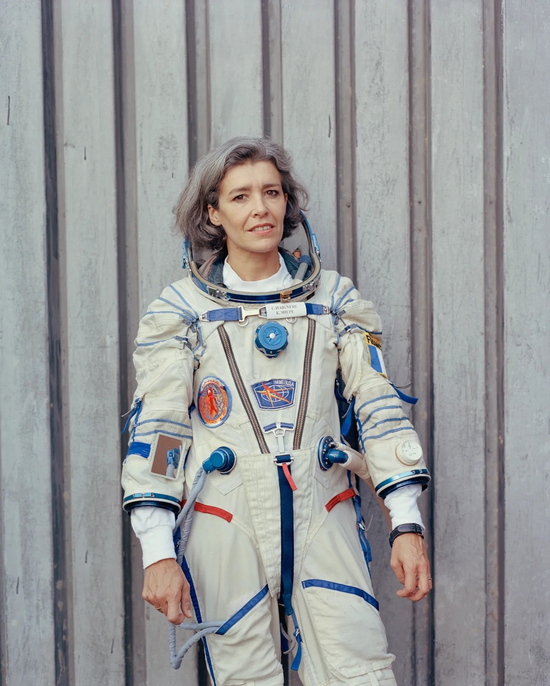 가장 잘 알려진 에뉴레의 사진은 아마 ‘안드로메다 미션’ 출발 직전에 찍은 것이 아닐까 싶어요. 그 임무를 통해 에뉴레는 우주에 간 최초의 프랑스 여성이자 국제 우주정거장에 도달한 최초의 유럽 여성, 그리고 서로 다른 두 궤도의 우주정거장에 체류한 세계 최초의 여성이 되었습니다.