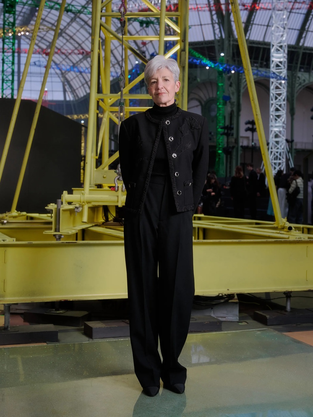 무대에는 부클레 트위드 소재의 워크 셔츠부터 프레스트 트위드 소재의 남성용 블루종까지, 남성복을 여성 테일러링 언어로 재조합한 다양한 아이템이 올랐습니다. 에뉴레는 이날 검은색 샤넬 수트를 입고 등장했습니다. 남성의 전유물처럼 여겨지던 우주복을 입던 그녀가, 여성을 위해 근사하게 재해석한 수트를 입은 모습은 블라지가 보여주고자 한 샤넬의 철학 그 자체였을지도 모르겠습니다.
