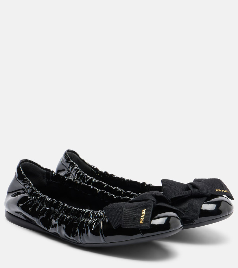 프라다리본 디테일 페이턴트 레더 발레리나 플랫