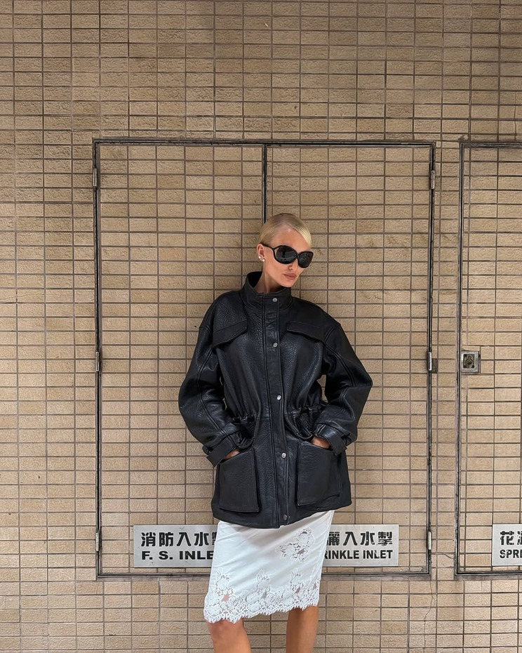 털털한 겉옷의 조합도 재밌습니다. 바람막이를 걸치면 예상 밖으로 명랑한 분위기가 살아나고, 레더 재킷이나 워크 재킷은 거친 인상이 부드러운 슬립 드레스와 대비를 이뤄 반전 매력을 뽐내죠.