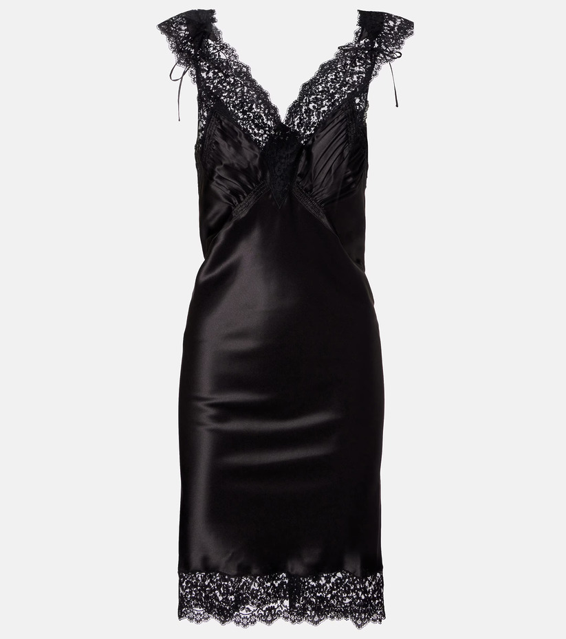 생 로랑레이스 트리밍 실크 새틴 슬립 드레스
