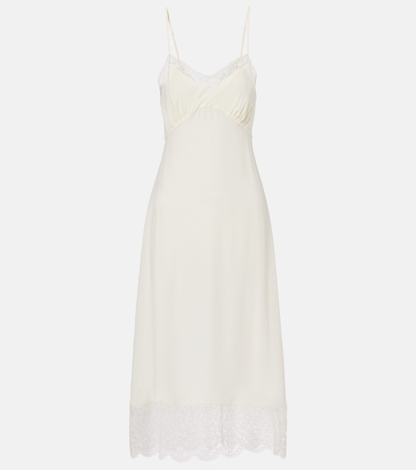 로헤레이스 트리밍 실크 새틴 슬립 드레스