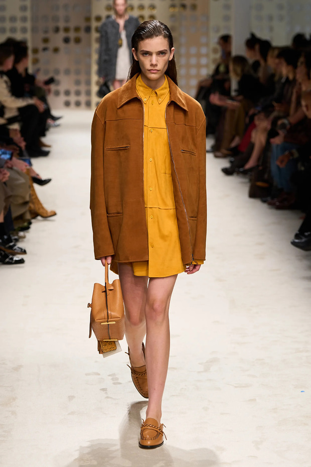 트렌드를 주도하는 것은 토즈와 셀린느입니다. ‘드라이빙 슈즈’ 하면 가장 먼저 생각나는 브랜드 토즈부터 살펴볼까요? 앙증맞은 포인트로 충분해 보이던 스티치 디테일도 인상적이었지만, 가장 눈에 띈 것은 스타일링이었습니다. 나일론 소재 아노락과 스웨이드 재킷을 활용한 스포티 룩과 캐주얼 룩에 백리스 로퍼가 활용되었다는 점에 주목하세요. 뒷굽을 구겨 신더라도 로퍼 특유의 클래식한 무드는 여전하다는 것을 배울 수 있습니다. 뒤꿈치가 드러난 덕분에 쿨한 분위기마저 느껴지는군요.