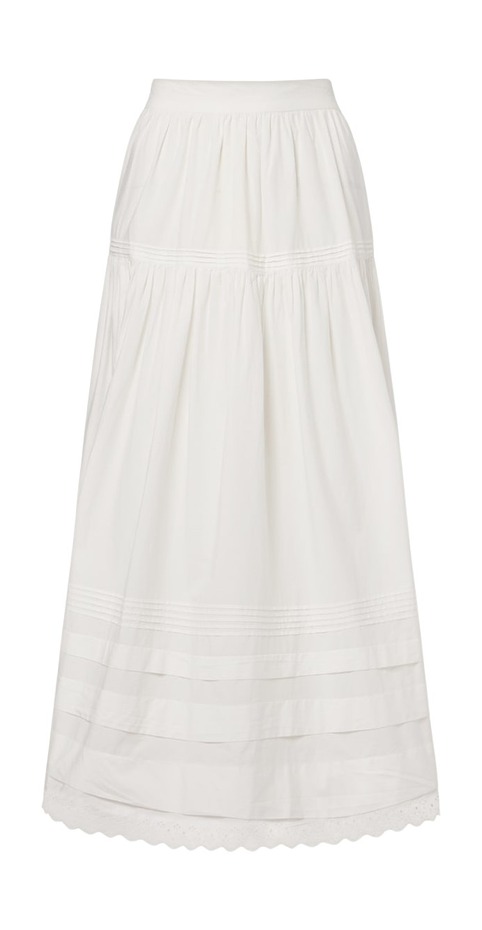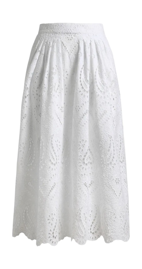 올 시즌 맥시스커트를 선택할 때 지켜야 할 유일한 원칙이 있다면 바로 컬러입니다. 반드시 흰색이어야 해요. 봄여름에 정말 잘 어울리는 색이잖아요. 가벼운 면 소재에 레이스 디테일까지 더한다면 더할 나위 없이 완벽할 겁니다.
