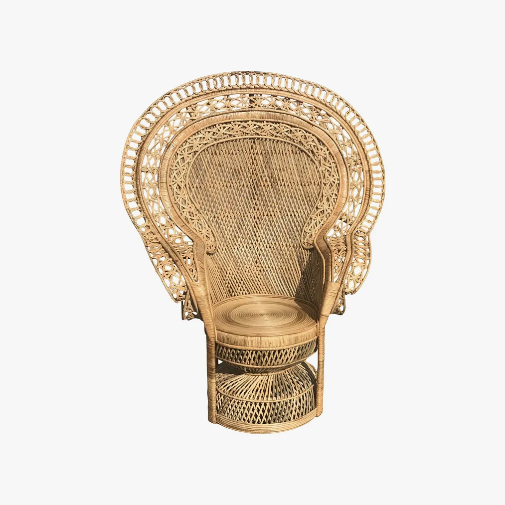 모양에서 알 수 있듯 깃털을 활짝 펼친 공작을 닮은 의자입니다. 필리핀에서 빠르게 자라는 라탄 덩굴을 엮어 만들었고, 19세기부터 초상 사진을 찍을 때 자주 쓰였죠. 왕좌처럼 생긴 화려한 형태 덕분에 인기가 많았습니다. 1960년대에는 가수 알 그린, 배우 돌리 파튼, 심지어 존 F. 케네디까지 여러 유명 인사들이 이 의자에 앉아 사진을 찍었고요.