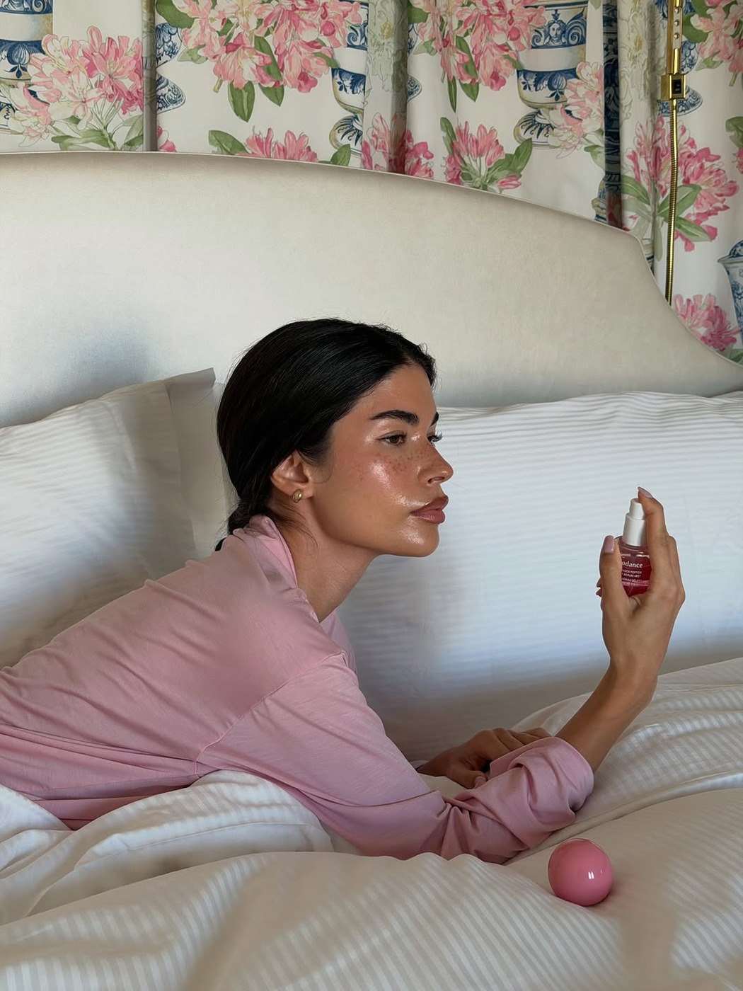 젤리 미스트는 용기 안에서는 탱글탱글 젤리 상태지만 스프레이를 누르는 순간 젤 분자가 아주 미세하게 쪼개지며 안개처럼 분사됩니다. 피부에 닿는 순간 입자가 스르륵 녹아들며 깊숙이 흡수되죠. 가까이에서 뿌리면 쫀쫀한 세럼처럼 농축된 영양감을 느낄 수 있고, 20cm 이상 거리에서 멀리 분사하면 가벼운 미스트처럼 메이크업 위에 안착합니다. 피부 표면에서 주르륵 흘러내리지 않고, 얇은 수분 젤리 막이 형성되니 수분 증발을 물리적으로 차단해 액체보다 훨씬 강력한 보습력을 자랑하죠.