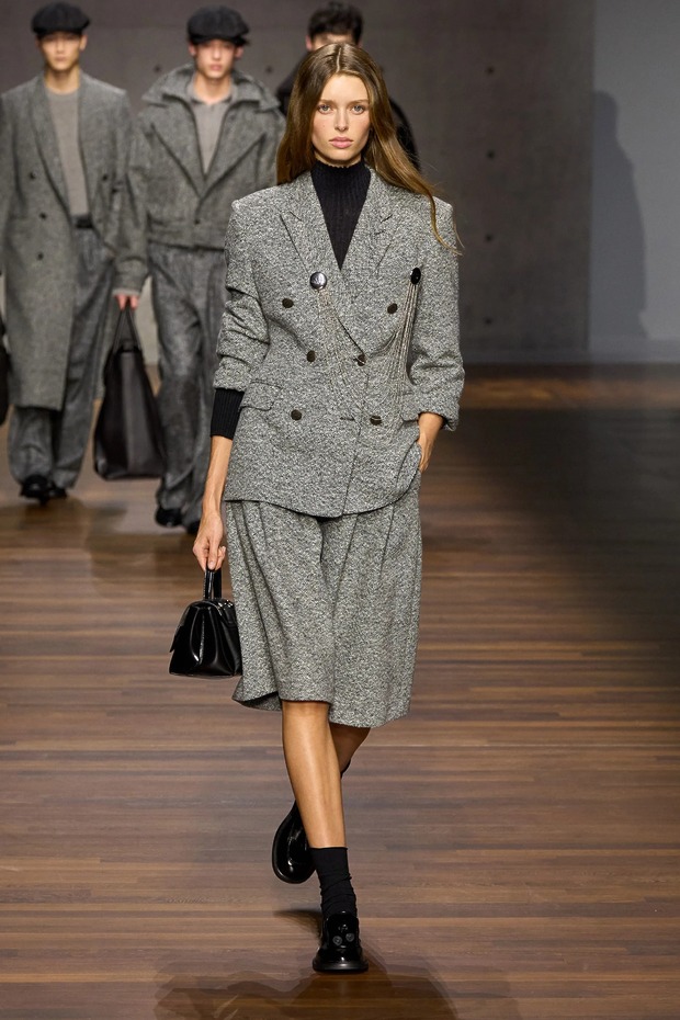 2026 가을/겨울 컬렉션에서 대체적으로 느껴진 흐름이 있습니다. 럭셔리를 다시 현실의 패션으로 끌어와 지속 가능하고 활용도 높은 스타일링을 구현하고자 하는 패션 하우스의 의지가 느껴졌거든요. 한편으로는 유쾌하고 장난기 있는 무드 또한 느낄 수 있었는데, 그 중심에 버뮤다 팬츠와 긴 양말의 조합이 있었습니다.