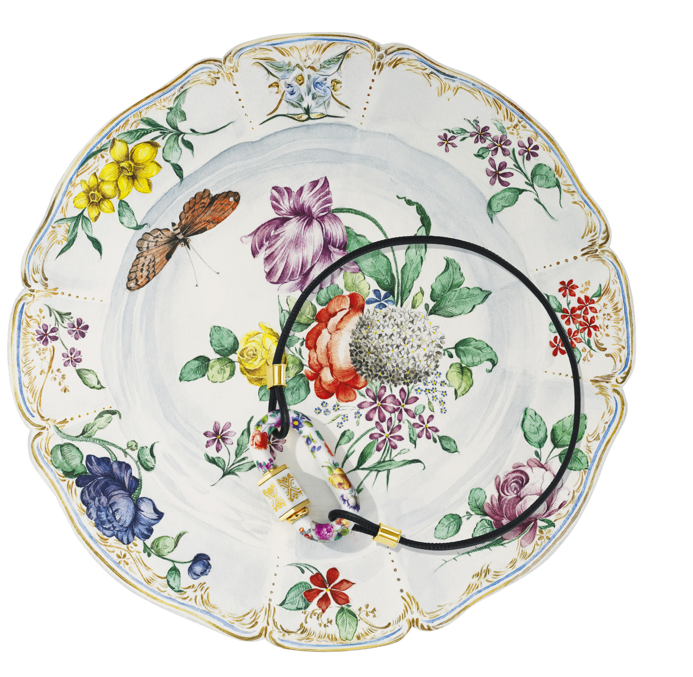 그녀의 최신 프로젝트는 독일 도자기 제조사 님펜부르크(Nymphenburg)와의 협업으로, 아름다운 문양이 새겨진 서빙용 식기에 대한 애정에서 비롯되었다. “‘컴벌랜드(Cumberland)’ 디너웨어에 새겨진 문양은 님펜부르크 예술의 정수입니다. 세상에서 가장 아름다운 접시죠.” 이 수작업 문양은 그녀의 18K 금귀고리와 팔찌, 대표 컬렉션 ‘락(Lock)’ 장식에 더해졌다.