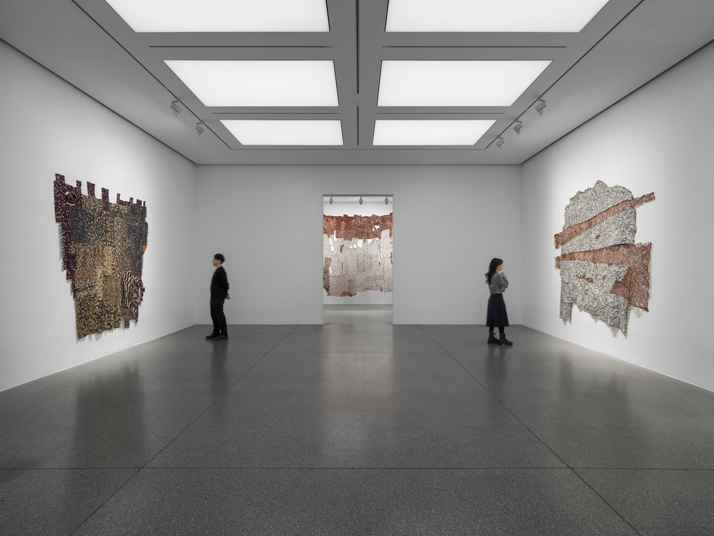 한국 미술계의 변화를 실감할 수 있는 몇몇 장면 혹은 전시가 있습니다. 저에게는 엘 아나추이의 전시가 그렇습니다. 2019년쯤이었을까요, 베니스 비엔날레 아르세날레에 설치된 엘 아나추이의 대규모 설치 작품을 보면서 무척 감탄했던 기억이 나는데요. 현대미술계가 지금처럼 제3세계 작가를 눈여겨보기 훨씬 전부터 가나 출신의 1944년생 작가 엘 아나추이는 대형 병뚜껑 작업으로 조각의 새로운 가능성을 제시하며 탈식민주의 예술 형식과 재료 실천을 일리 있게 풀어낸 작가로 미술계에서 회자됐습니다. 금속 폐기물로 만든 거대한 천 같은 조각을 보면서, 아마도 그에게는 병뚜껑이 가장 구하기 쉬운 재료이지 않았을까 짐작하기도 했지요. 그때처럼 화이트 큐브 서울 전시장에 그의 금속 작업이 설치되었습니다. 시대와 맥락이 모두 변화한 지금도 아나추이의 작업은 뭉클한 감흥을 선사하는 동시에 우리에게 진보한 조각의 본질을 함께 보여줍니다.
