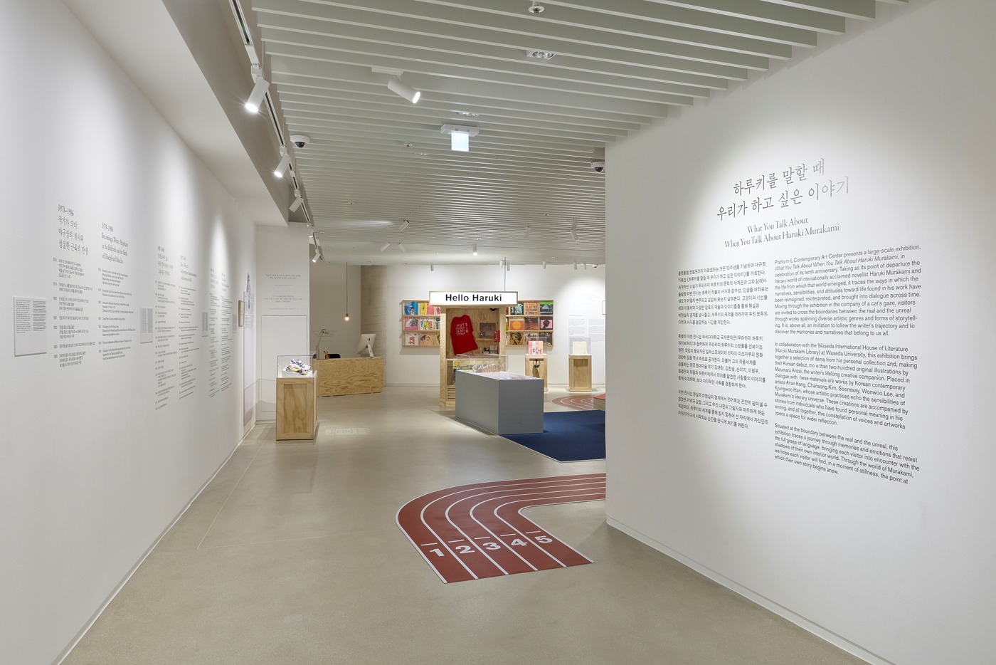 다른 설명은 불필요하다. 무라카미 하루키, 그 이름만으로도 충분하고 충만하다. 세계적인 작가, 누군가의 원더랜드, 누군가의 무궁한 세계, 누군가의 일상의 리추얼. 하루키의 소설과 에세이를 읽으며 인생의 한 시기를 통과한 이들이라면, 하루키 덕후라고 자부한다면, 이제 막 하루키 세계로 들어선 초심자이자 입문자라면, 놓칠 수 없는 전시가 열린다. 플랫폼엘 컨템포러리 아트센터(플랫폼엘)가 개관 10주년을 맞아 야심 차게 준비한 무라카미 하루키 <하루키를 말할 때 우리가 하고 싶은 이야기>다. 그간 플랫폼엘은 렉처, 전시, 퍼포먼스, 영상 작업을 두루 오가며 동시대 다양한 장르와 매체의 작가들에게 열린 공간으로 자리해왔다. 10년의 시간을 기념하는 자리에 예술 애호가들이 꾸준히 찾아 읽고 탐닉하는 작가, 작가들의 작가라고 할 수 있는 무라카미 하루키를 호명한 건 지극히 자연스럽다.