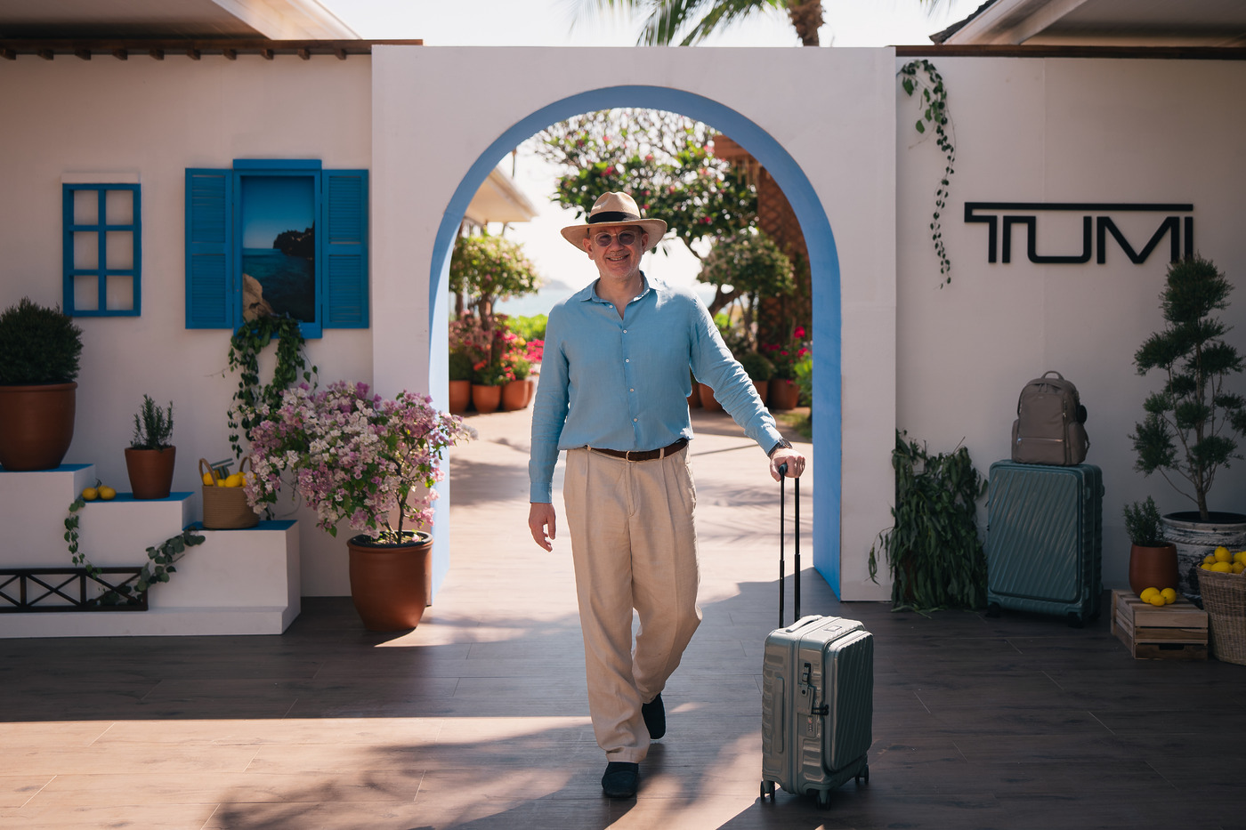 코사무이의 해변 위에 지중해의 감각이 더해졌다. 레몬과 테라코타, 바다를 닮은 컬러에 부드러운 핑크가 더해져 공간을 채우고, 그 안에서 투미의 메디터레니언 이스케이프(Mediterranean Escape) 컬렉션 론칭 이벤트가 펼쳐졌다. 이동이 아닌 여정으로서의 여행. 그 흐름을 이끄는 크리에이티브 디렉터 빅터 산즈(Victor Sanz)와 APAC 부사장 아리스 마룰리스(Aris Maroulis)를 만났다.