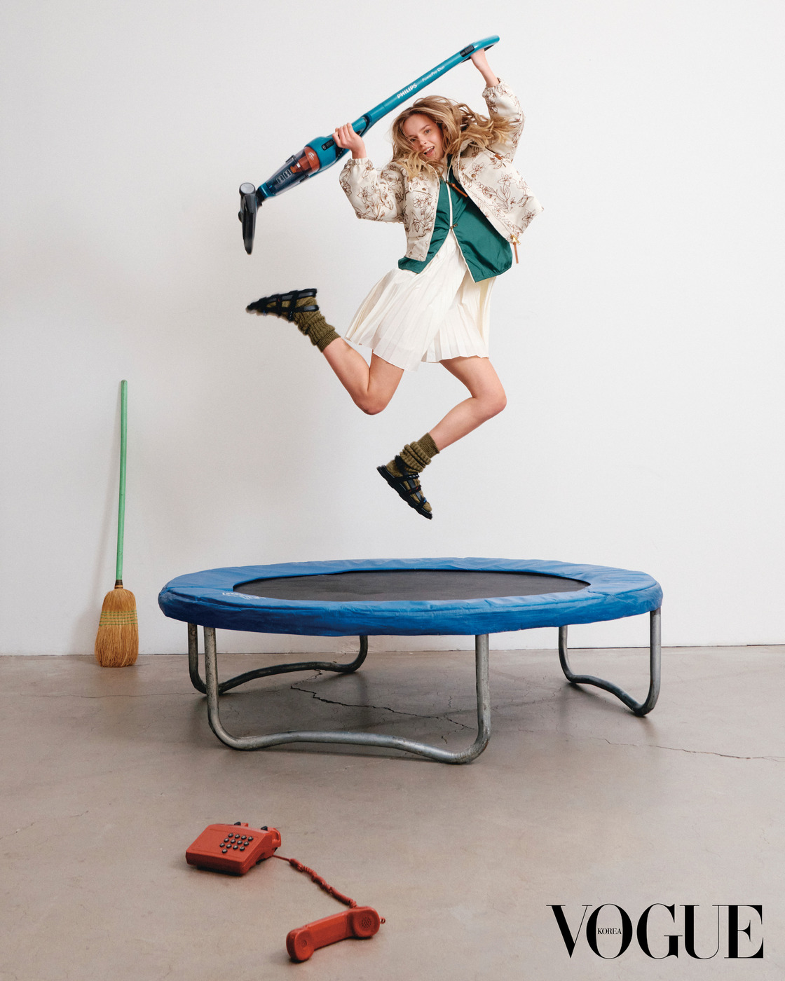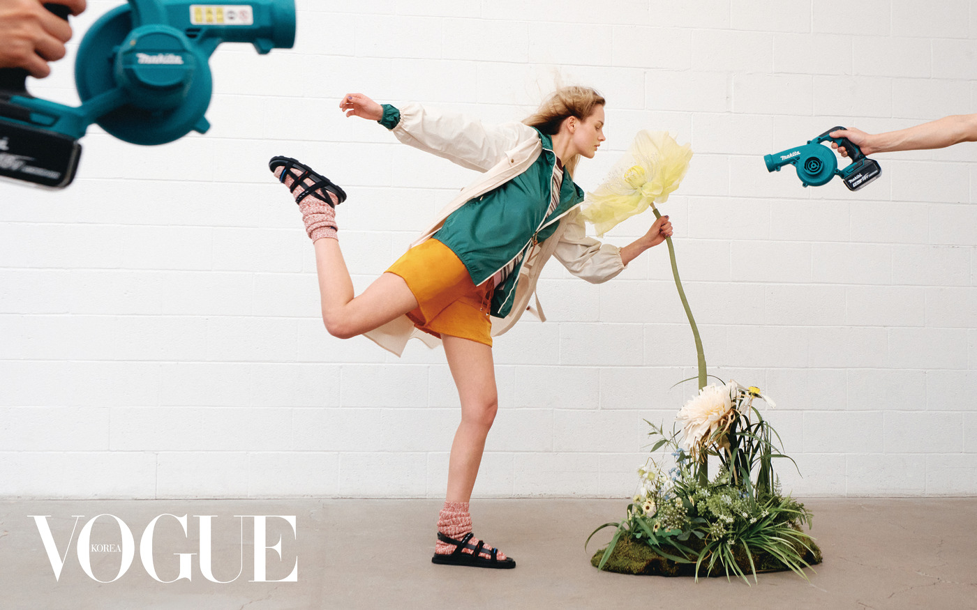재킷처럼 연출한 드레스 안에 가벼운 재킷과 쇼츠를 입었다. 거센 바람도 가뿐하게 견디는 기능성도 놓치지 않았다.