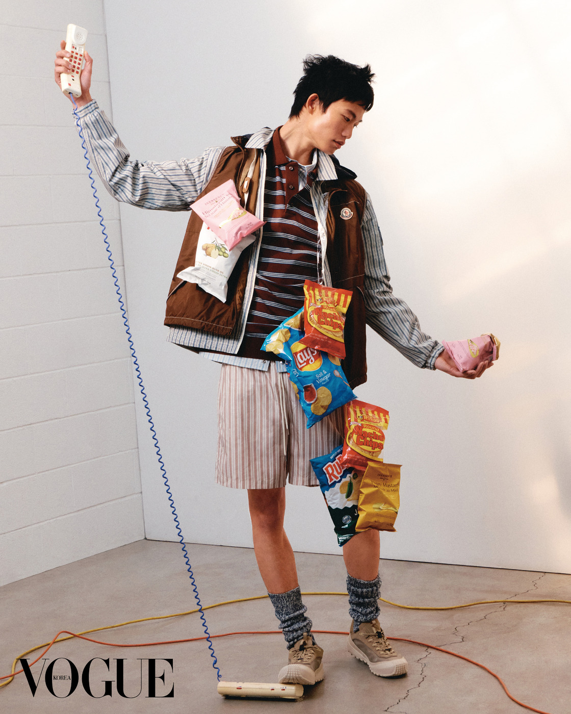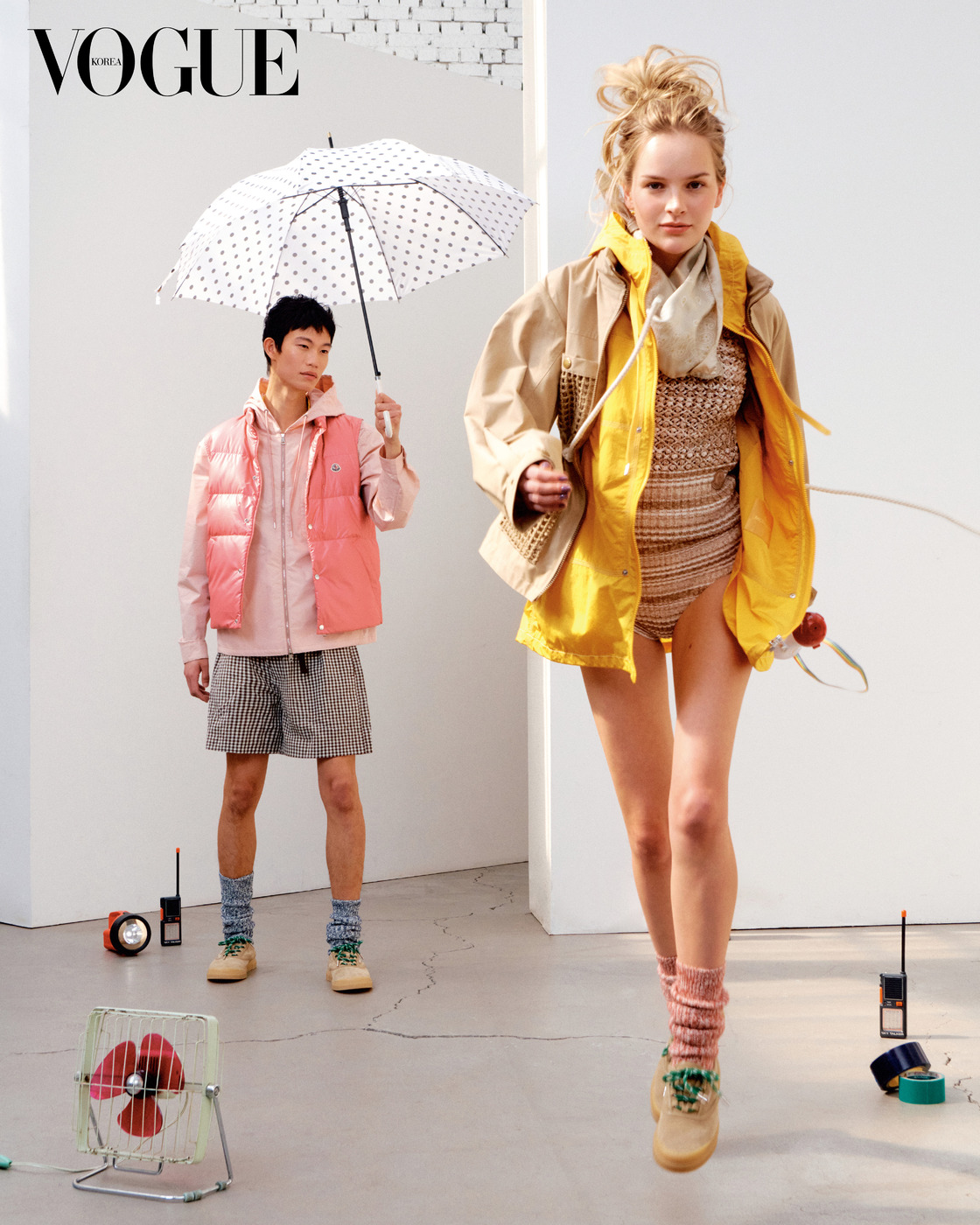 다채로운 컬러와 소재, 패턴으로 완성된 몽클레르의 여름. 나일론과 코튼, 니트는 겹겹이 쌓이며 풍성한 볼륨을 더한다. 의상과 액세서리는 몽클레르(Moncler).