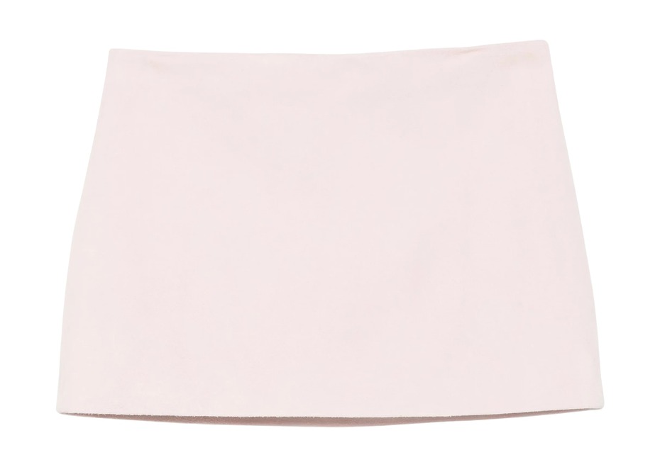 스커트의 기세야 말할 것도 없죠. 이왕 스커트 생활을 시작하는 거, ‘교복 치마’ 같은 블랙이나 그레이, 네이비를 벗어나 페일 핑크로 건너가는 겁니다. 핑크의 연약함을 상쇄할 그레이 니트, 레더 슈즈와 매치하세요.