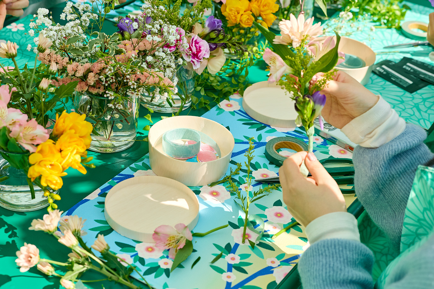 플로리스트의 가이드를 차근차근 따라가다 보면 (손재주가 전혀 없는 나 같은 사람에게도) 꽤 만족할 만한 화관이 탄생한다. 내 옆자리에 앉은 샬롯 가스토는 연신 “아름다워”, “나는 정말 꽃이 좋아”라고 외치면서, 그 일러스트처럼 사랑스럽고 풍성하며, 정말이지 봄을 꼭 닮은 화관을 완성했다. 그에 비하면 내 것은 조금 소박했지만 생각보다 훨씬 즐거웠고, 무엇보다 깊이 몰입하게 되는 경험이었다. 꽃을 그저 바라볼 줄만 알았지, 이렇게 직접 즐겨본 적은 없었던 내게도 완전히 새로운 봄의 기억이 되었다.