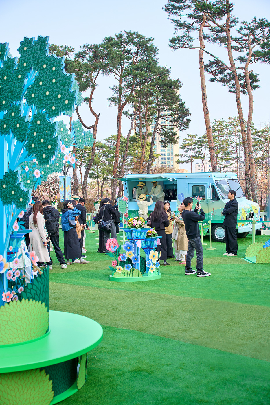 잠실 롯데월드타워 월드파크에 들어서면서부터 봄기운이 짙게 풍긴다. 팝업 동화책 세상 속으로 들어가는 듯한 느낌이다. 넓고 푸른 잔디 위로 사랑스러운 나무 일러스트, 꽃 그림으로 장식된 아치형 구조물과 파빌리온 등이 가득 차 있다. 2D와 3D를 넘나드는 봄의 정원을 만든 건 2018년부터 메종의 크리에이티브 파트너로 함께해온 프랑스 아티스트 샬롯 가스토(Charlotte Gastaut)다.