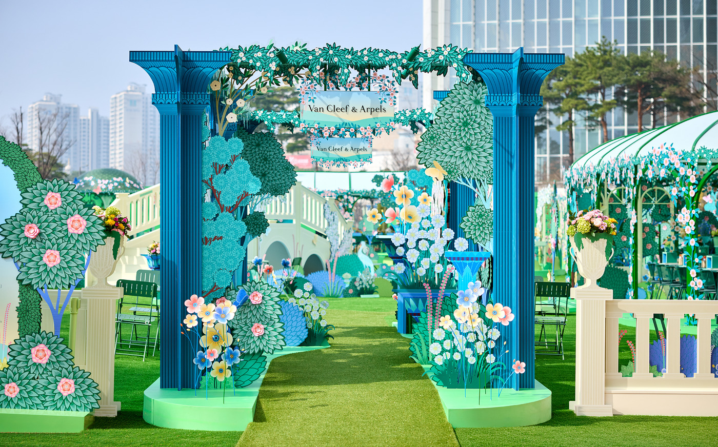샬롯 가스토의 서정적이고 장식적인 세계는 반클리프 아펠과도 닮았다. 메종 특유의 ‘봄이 도래하는 순간’ 같은 느낌이 그녀의 일러스트에 그대로 녹아 있는 것. 샬롯 가스토는 잠실의 잔디밭 위에 구상한 봄의 정원에 대해 이렇게 말했다. “반클리프 아펠과 협업하면서 저는 자연이 지닌 마법 같은 본질에 깊은 감동을 받았습니다. 자연을 진심으로 바라보고 온전히 받아들일 때 비로소 그 생동감 넘치는 영혼을 포착할 수 있기 때문입니다. 제 예술의 세계는 동화적 유희와 자연의 경이로움, 영원한 아름다움을 구현한다는 점에서 메종과 깊은 유대감을 지니고 있습니다. 서울 잠실에서 이토록 매혹적인 공간을 선보이게 되어 진심으로 영광입니다.”