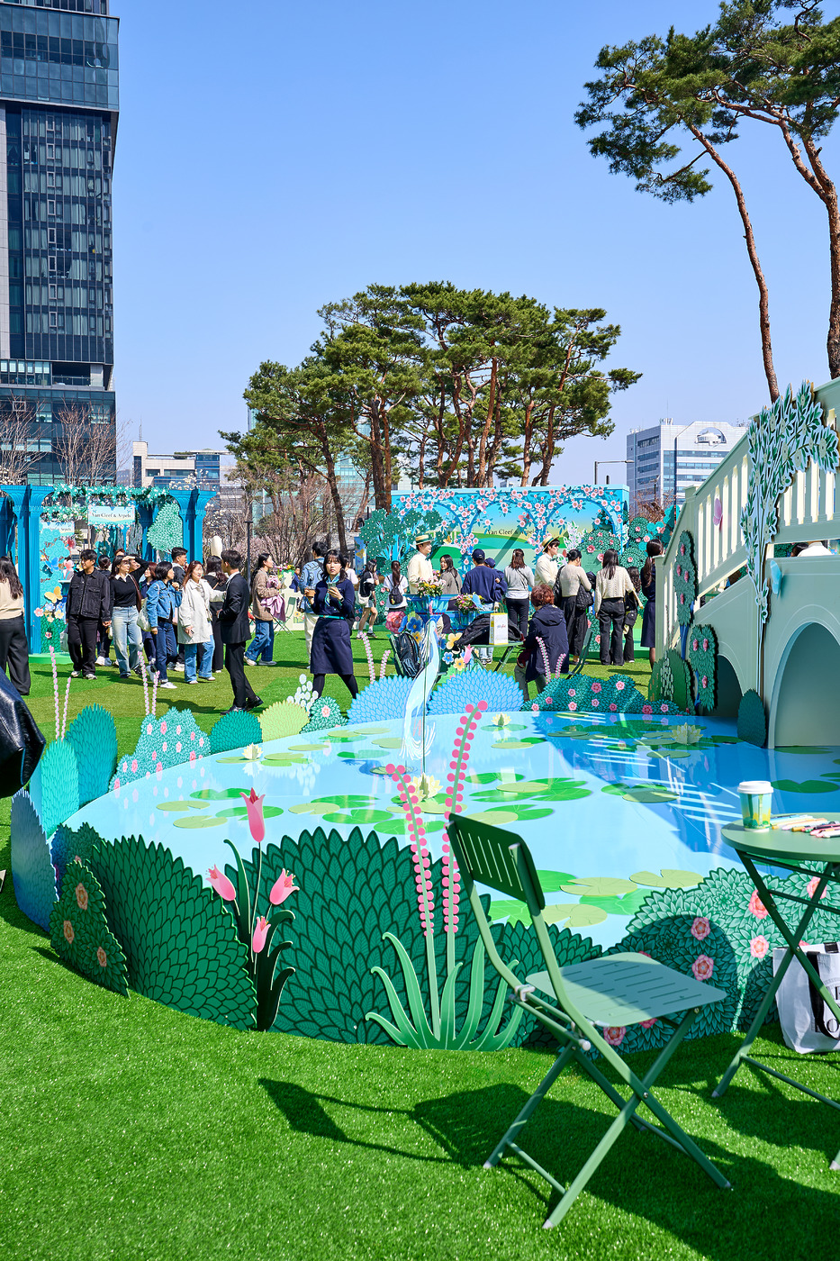 어린이책 일러스트레이터로 잘 알려진 그녀는 궁정 드레스 소재인 실크에서 영감을 받아 몽환적이면서도 따뜻한 파스텔 색감과 섬세한 디테일의 일러스트로 정원을 완성했다. 공간에 들어서는 것만으로도 마음이 화사해진다. 샬롯 가스토의 순수하고 서정적인 상상력은 현실을 잠시 잊게 만들고, 기분 좋은 착각 속으로 이끈다. 프랑스판 <브리저튼>에 등장할 법한 고전적이고 우아한 정원에서 티 파티에 초대받은 듯한 기분. 그만큼 사랑스럽고, 그만큼 낭만적이다.
