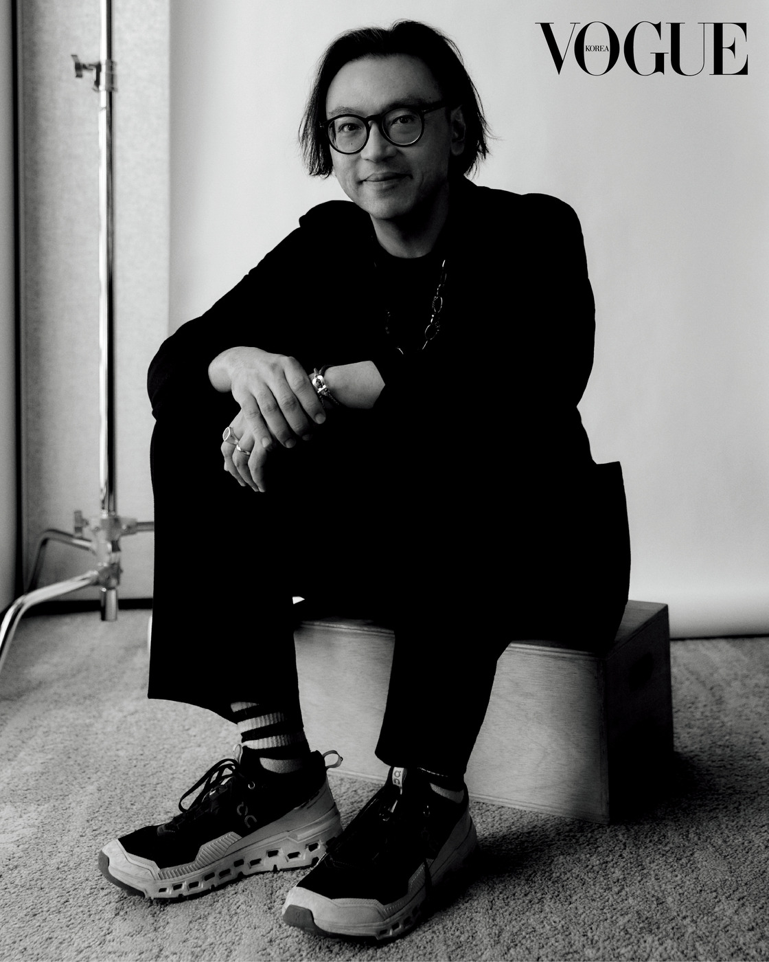 9월 열리는 광주 비엔날레의 주제를 발표하는 기자 간담회 직후, 싱가포르 출신 아티스트 호 추 니엔(Ho Tzu Nyen, 1976년생)과 큐레이터들이 서로의 알록달록한 양말을 보며 웃고 있었다. 이들은 함께 비엔날레를 준비하는 박가희, 브라이언 쿠안 우드(Brian Kuan Wood), 최경화다. 호 추 니엔은 검은색 수트에 줄무늬 양말을 신었다. 패션에 관심이 많아 보였는데, 패션은 그에게 수행을 위한 작업복 개념이다. “비슷한 블랙 의상 다섯 벌이 있어요. 이걸 의식처럼 차려입고 작업실에 출근하죠. 이런 반복은 아주 중요합니다. 안정감이 들어 더 유연하고 자유롭게 작업에 임할 수 있으니까요.” 액세서리도 거의 바뀌지 않을 듯하다. 결혼반지를 분실해 절대 잃어버릴 수 없는 아이템으로 아내와 다시 골랐다는 프레드 실버 팔찌, 할머니가 물려준 금가락지, 그리고 ‘타이거즈 아이’라는 보석이 장식된 반지다. 호랑이는 그에게 토템 같은 동물로서 그를 소재로 한 작품도 꾸준히 선보여왔다.