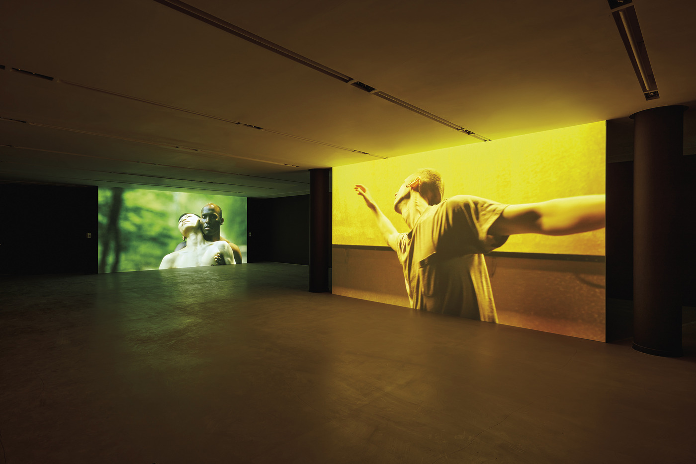 한국 작가의 작품도 보인다. 그중 지난해에 송은미술대상을 수상한 탁영준 작가의 4채널 비디오 설치 작품이 눈에 띄었다. ‘Wish You a Lovely Sunday’(2021)에서 무용수들은 교회와 퀴어 클럽이라는 대척점을 이룬 공간에서 안무를 연습하고, 노르웨이 소설에서 영감을 받은 ‘Love at First Sight on Monday’(2024)에선 10대 여성 무용수들이 들려주는 부모의 로맨스를 게이 남성 무용수들이 몸으로 표현한다.