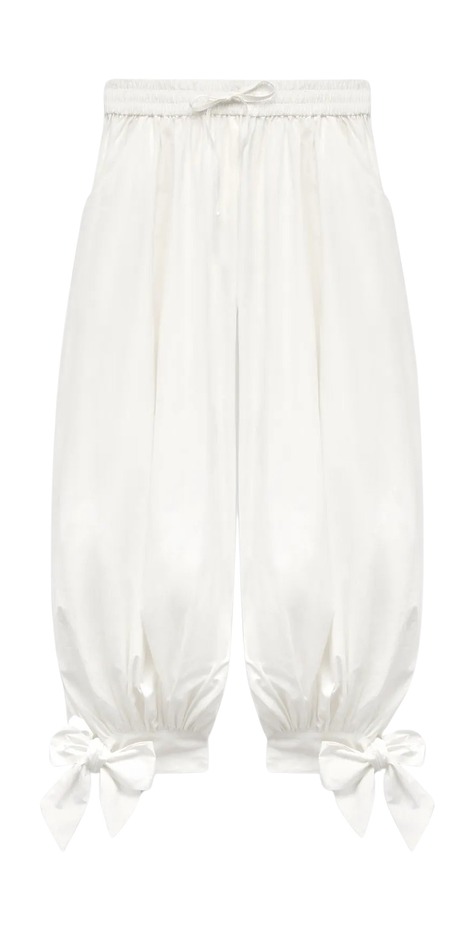 사롱 팬츠로도 불리는 이 스타일은 아이템 자체만으로도 존재감이 넘치죠. 옆면의 비대칭 여밈과 스커트처럼 겹치는 패널이 특징으로 여유로우면서도 우아한 분위기를 자아냅니다.