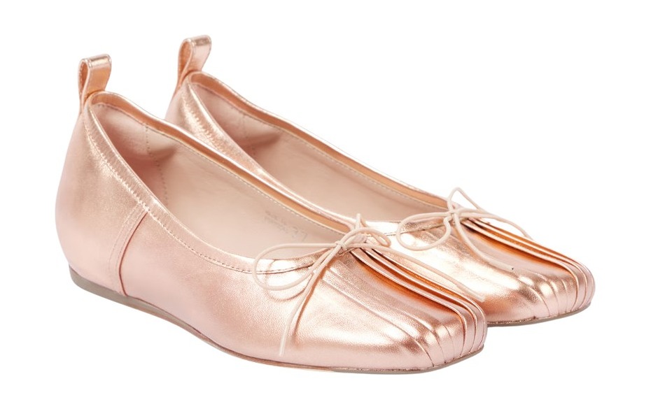 블랙 로퍼는 이제 그만! 발레리나 슈즈와 매치하면 깔끔하고 세련된 룩이 완성됩니다. 새틴 소재나 리본 디테일 발레리나 슈즈를 선택해 전체적인 뉴트럴 톤에 살짝 대비를 주는 것도 방법이에요.