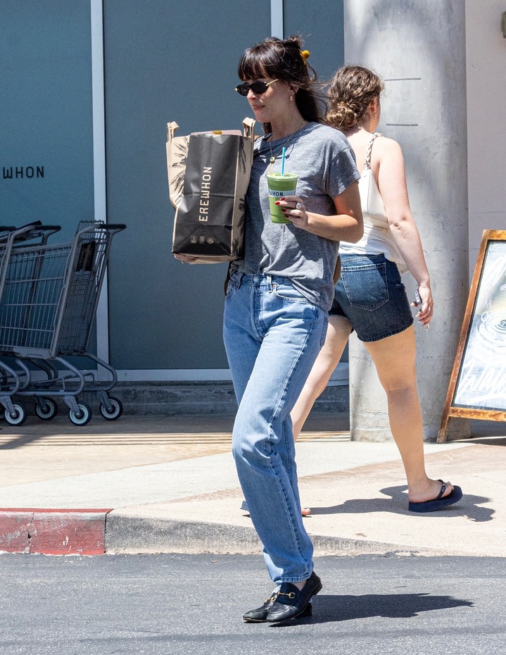 로스앤젤레스에서 포착된 다코타는 롤 모델(Role Model)과 함께였죠. 아이스커피로 추정되는 찬 음료를 들고 여유로우면서도 편안한 분위기의 룩을 차려입었고요.