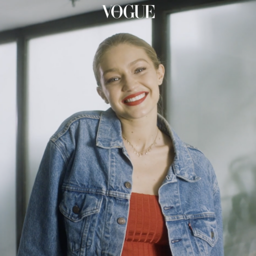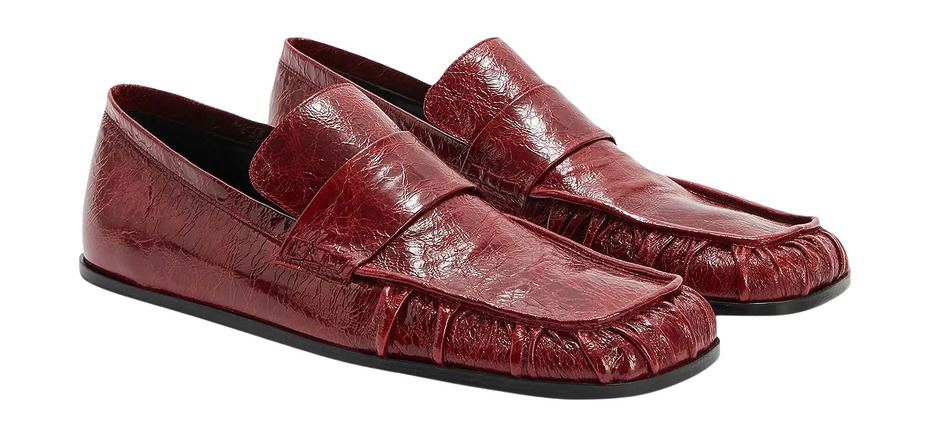 그리고 레드 로퍼로 또 한 번 킥을 더합니다. 대부분은 이런 룩에 흰색 스니커즈를 신어 무난하게 마무리하지만, 지지는 새빨간 미우미우 소프트 로퍼를 택했죠. 자칫 밋밋할 수 있는 네이비와 베이지 톤의 룩에 강렬한 레드 컬러로 확실한 포인트를 준 거죠. 빼꼼 보이는 화이트 삭스가 프레피 룩의 분위기를 배가합니다.